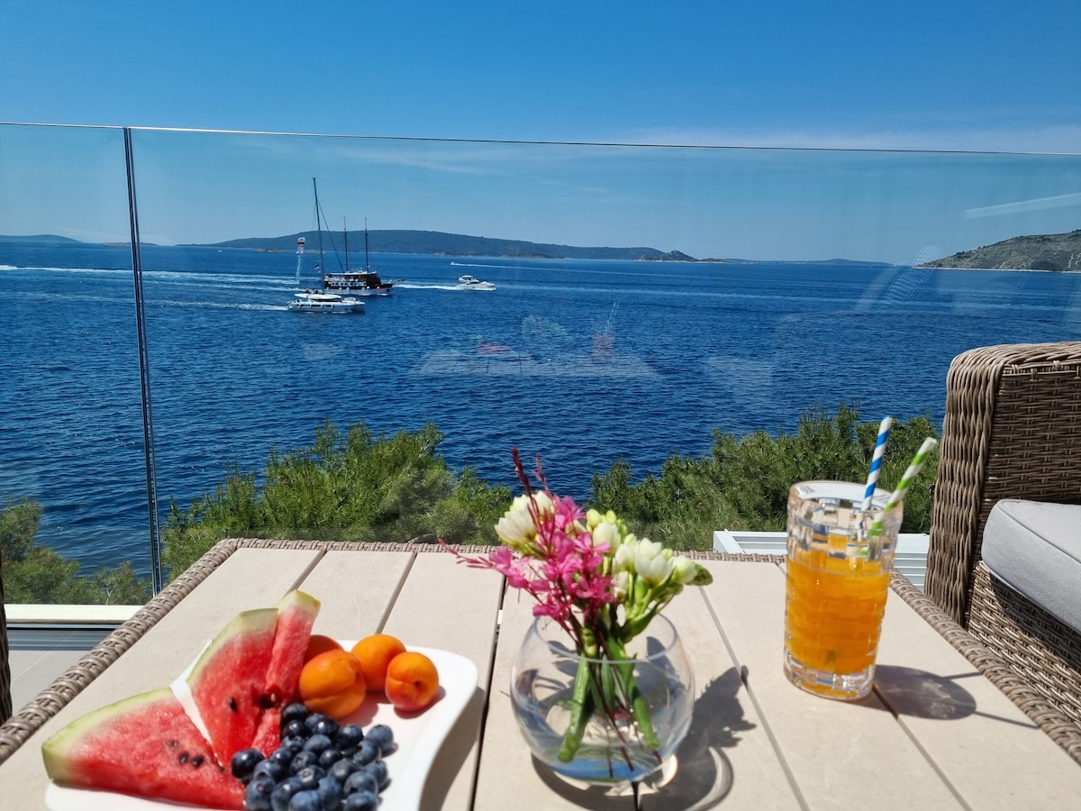 Villa ideal para familias con terraza en la azotea y vistas impresionantes al mar Adriático, ideal también para grupos más grandes. Nuestra villa lo tiene todo: ubicación fabulosa, a pocos pasos del mar, fácil acceso a restaurantes, tiendas, taxi en barco y puerto deportivo, y mucho espacio exterior para disfrutar de los días y noches de verano. Podemos alojar hasta 12-14 personas (máx. 12 adultos) en total en tres hermosos apartamentos.
