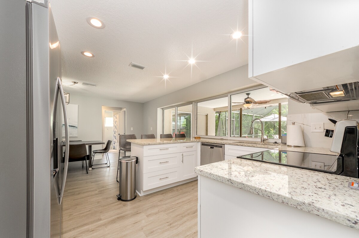 This stylish place is perfect for family vacation or work trip.. all brand new furnishing and appliances.. heated pool and three TVs for your enjoyment. The home is also conveniently located near many beaches, honeymoon island 6.9 miles Fred Howard park 11 miles ,Clearwater beach 14 miles ,Tampa and St. Pete . Please check house rules for more info. When you book, please put the exact number of guests that are going to be staying at the property.