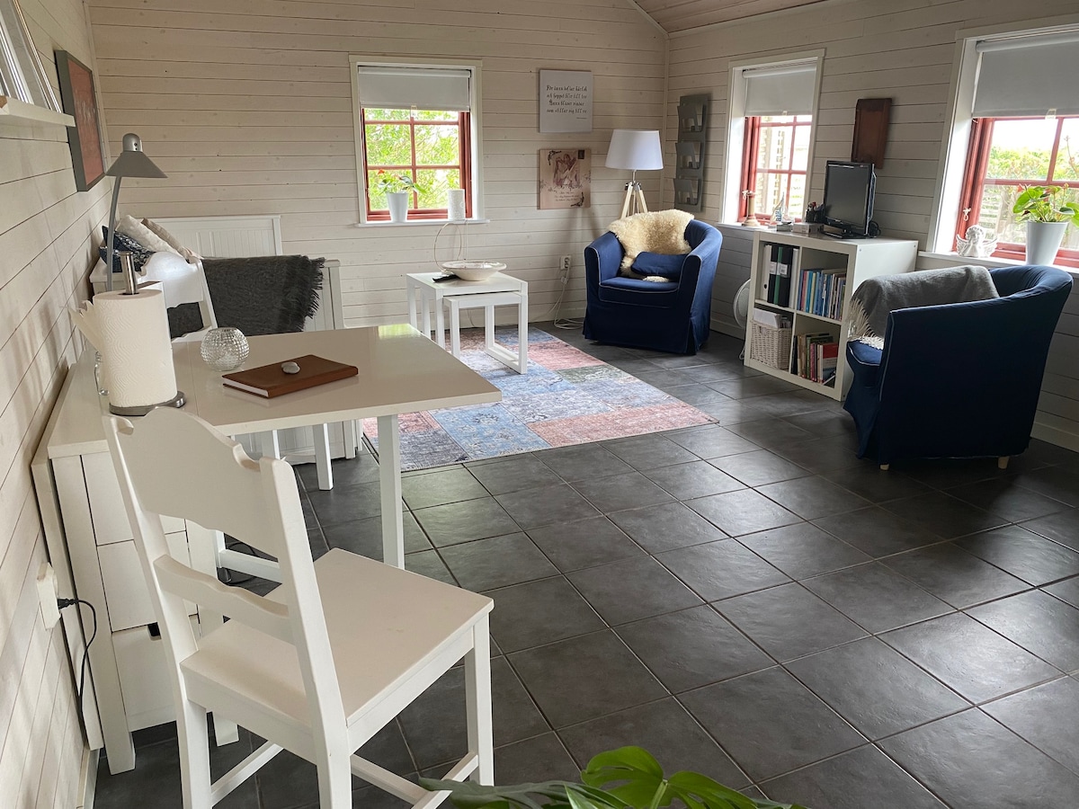 Welcome to our little paradise! In the corner of our garden we have a house that we rent out. It is near the ocean and the beach in the old fishing village Träslövsläge. If you want to rent this house for a week or more from september-may, please send me a request for a discount! This little house (23 square meters) has its own cozy patio on the grass under the apple tree. Near buses, restaurant, ice cream bar and the beach (0,5 km). 6 km from downtown Varberg.