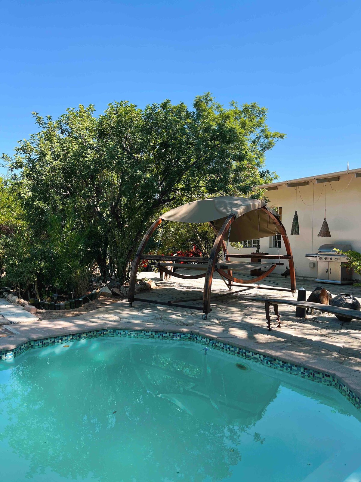 The property offers: -Now new! A traditional "Braai" for all your grilling needs - Spacious, cozy bedrooms equipped with A/C units - A fully equipped kitchen ideal for self-catering - An outdoor swimming pool — perfect for cooling off and enjoying the Namibian sun - A dedicated yoga and meditation room for mindful relaxation or light exercise - A large living room with comfortable seating, a flat-screen TV, - Fast Wi-Fi throughout the property - Secure parking and a safe, peaceful environment