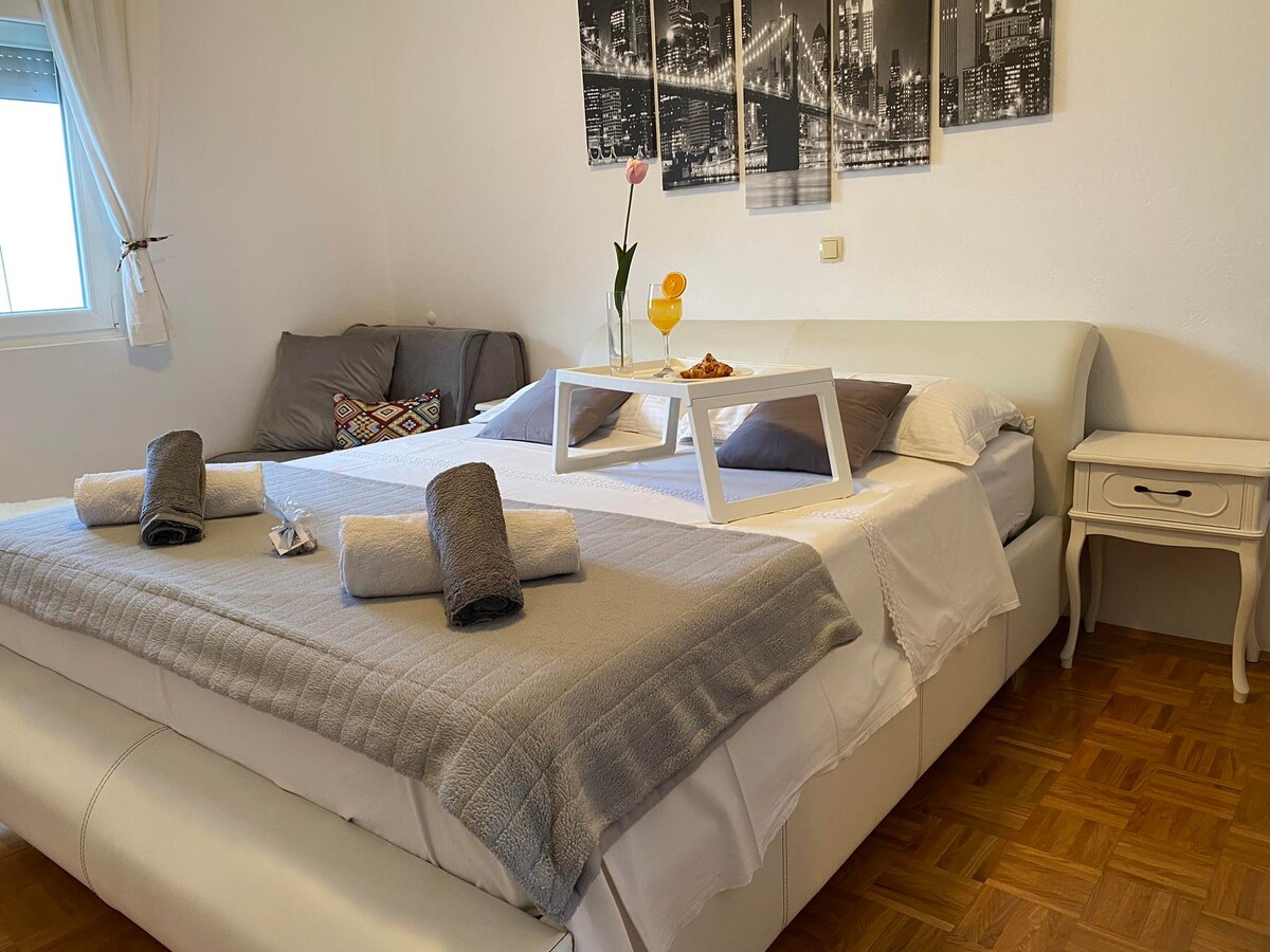 Estimados huéspedes, disfruten de la elegante decoración de este alojamiento en el centro de la ciudad. Estamos ubicados en el centro de Biograd. La playa de Dražice y la piscina de la ciudad están a 5 minutos a pie del apartamento. Todos los restaurantes y cafés están cerca del apartamento. La estación de autobuses está a 300 metros del alojamiento y el Centro de Salud está cerca. Esperamos su llegada.
