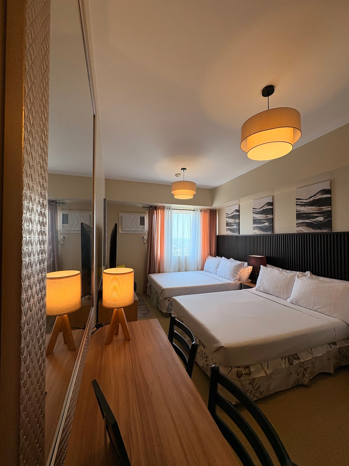 La unidad de apartamento está a poca distancia a pie de restaurantes, tiendas, un hospital y el centro comercial Ayala. El entorno es seguro. Hay seguridad las 24 horas y personal asignado en el vestíbulo. En el edificio hay ascensor. El interior de la unidad de estudio es acogedor y cómodo. Viene con 2 camas de matrimonio. Puede alojar hasta 3 huéspedes. Se proporciona conexión wifi a internet, ideal para llamadas por internet y navegar por la web.