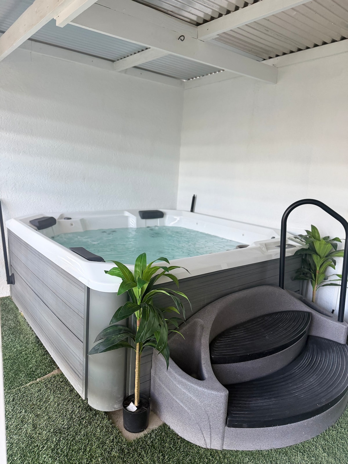 Es un lugar muy acogedor, limpio y moderno. Hay una ducha caliente. Tenemos un gran cenador con mesa de comedor y una parrilla. Se encuentra en el centro de la zona isleña de Paradera. A 7 minutos del aeropuerto, a 10 minutos del centro de la ciudad y a 12 minutos del edificio de apartamentos. Hay pequeños supermercados cerca. Tenemos la opción de alquilar un coche con recogida gratuita en el aeropuerto. El lugar tiene una hermosa piscina de agua salada con una cascada que se limpiará profesionalmente dos veces por semana.