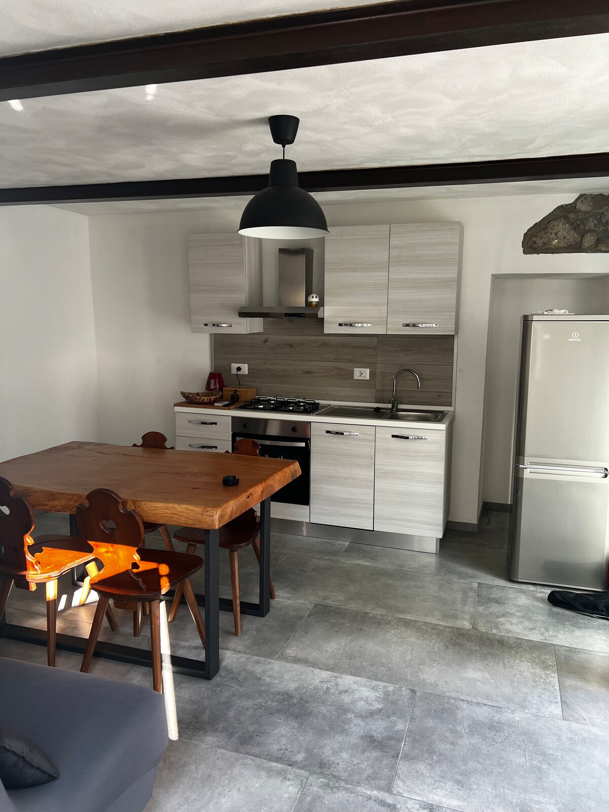 Il nostro appartamento è stato ricavato dalla ristrutturazione di una vecchia casa del sec XV dove legno e pietra si sposano con un tocco di delicata modernità. L'alloggio si trova al primo piano, il legno la fa da padrone con pavimenti in parquet e travi a vista. Dispone di due camere da letto,ampio soggiorno-cucina ,bagno con vasca e una grande doccia in un altro ambiente. La vicinanza al centro del paese e a facili sentieri permette di godersi la natura e avere tutto a portata di mano.