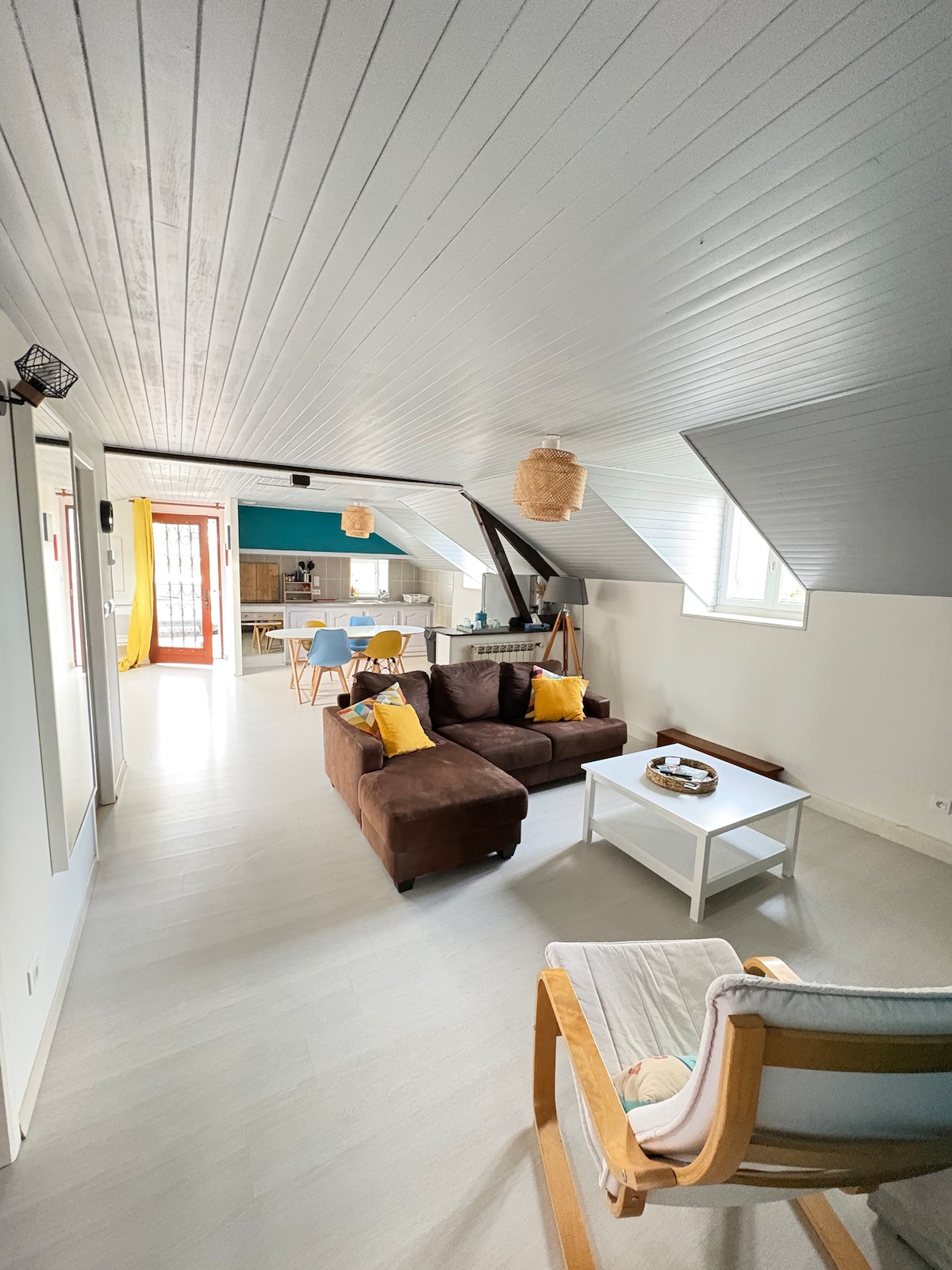 En la parte superior de las escaleras de mármol, descubra este espacioso T3 de 91 m2. En el corazón de la ciudad e incluso en la plaza del mercado, disfrute de todos los servicios cerca. En un entorno sereno, tendrá acceso a las muchas comodidades que ofrece este apartamento (pantalla gigante, ducha italiana, nevera americana, cafetera de grano, dormitorio de 15 m2 con armarios, baño y aseo separados...) Alojamiento de 6 plazas, para peregrinos, trabajadores, en familia o con amigos. Llegada autónoma con caja de llaves