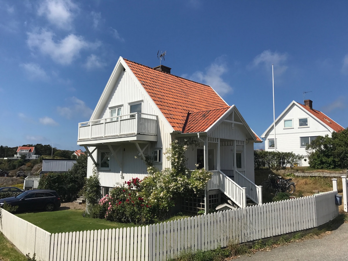 Hus på 44kvm med möjlighet att bo fem personer. Huset är vackert beläget med utsikt över ängar och berg. Framför huset finns en stor gräsmatta som kan användas för lekar och andra aktiviteter. Det är fem minuters promenad till havet och i viken finns en eka som man får låna. På ön finns en fiskaffär och restaurang, också den fem minuters promenad från huset. Naturen på ön är mångskiftande med öppet hav och klippor i väst, små jordbruk och skog mitt på ön.