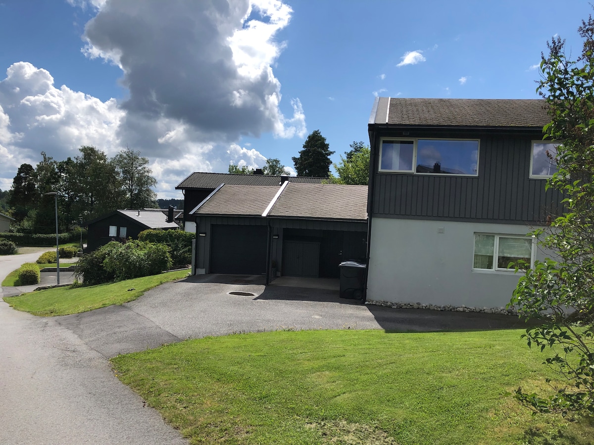 Alquilamos el primer piso de nuestra casa. El departamento tiene dos dormitorios, sala de estar con comedor y dos áreas de estar, una con TV, la otra con vistas al fiordo de Oslo y Oscarsborg, su propia cocina y baño/inodoro con bañera y lavadora. Aproximadamente 105 metros cuadrados. El alojamiento está ubicado en una zona de cabaña tranquila con proximidad al bosque y al mar. Hay dos patios disponibles en el departamento. A poca distancia de Seierstenmarka. A 12 minutos a pie de la zona de natación junto al fiordo. A 1,5 km de la parada de autobús. A 2 km del centro de la ciudad.