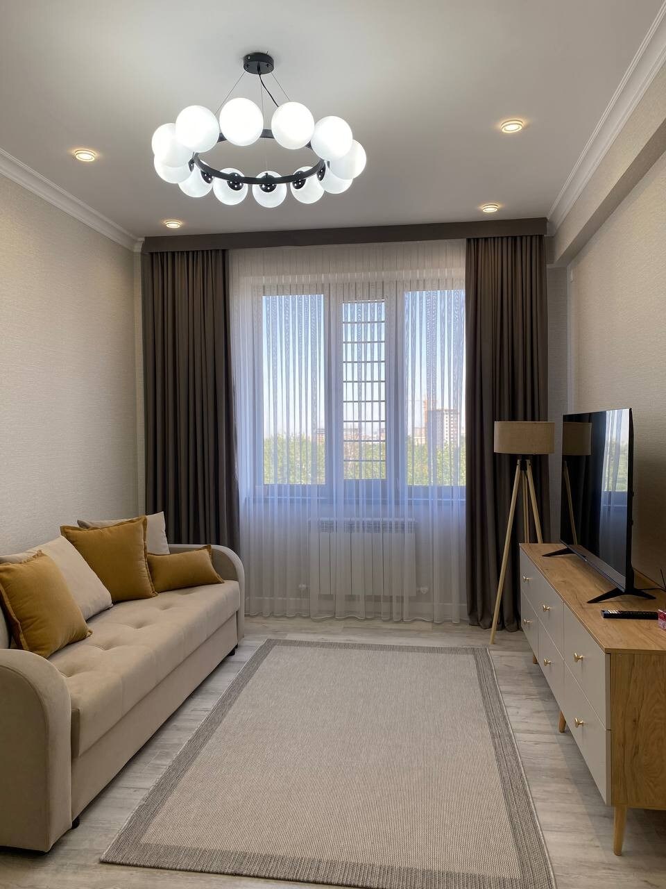 Уютная квартира с современным интерьером в тихом и безопасном районе — Резиденция B. Полностью оборудованная кухня, кондиционер, Wi-Fi, стиральная машина, свежие полотенца и постельное бельё. Уютная спальня, просторная гостиная и балкон для отдыха. Рядом магазины, кафе и транспорт. Идеально для пары, семьи или деловой поездки. Быстрое заселение и забота о каждом госте!