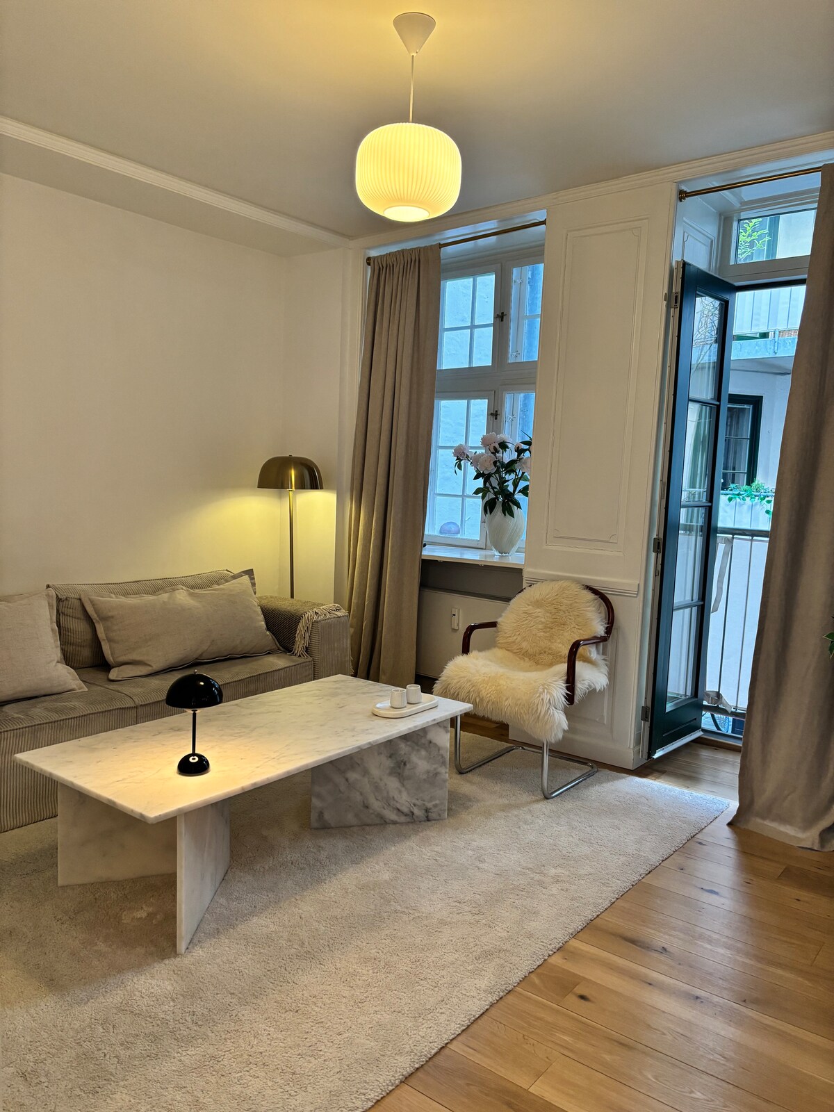 Charming 1-bedroom apartment located on a quiet street parallel to Strøget in the heart of Copenhagen. This stylish retreat sleeps up to 4 guests with a cozy double bedroom and a comfortable sofa bed in the living room. Featuring warm wooden floors, a bright fully equipped kitchen with dining area, modern bathroom, washer and dryer, free WiFi, fresh linens, and essential amenities. Perfect for couples, small families, or business travelers seeking comfort and a prime central location.