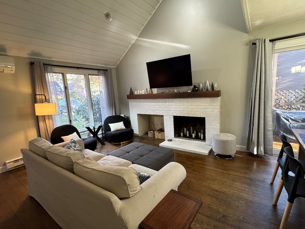 This Eastman condo is centrally located for year-round outdoor fun! This multi-level, open concept home can accommodate a large family or three couples looking for a fall color tour, or a ski getaway. Lower level features a game/tv room with a comfy sofa bed. Main floor has a living room with television, dining table that seats six, and a full service kitchen. Upstairs has king bedroom, full bath and cozy reading nook.The charms of New Hampshire surround you in this cozy, light-filled getaway.