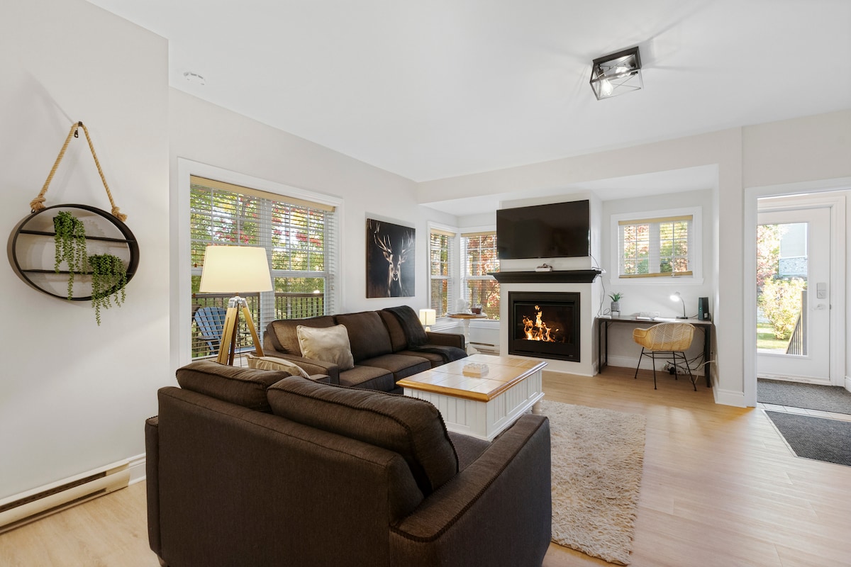 ¡Esquí dentro/fuera en el sendero Plateau, traslado al pueblo, chimenea, pisos con calefacción y bañera de hidromasaje! ¡Ideales para escapadas durante todo el año! En el complejo Plateau y a 10 minutos a pie de Pedestrian Village. El complejo cuenta con una pista de hielo de invierno y una piscina de temporada. Ubicación privada y tranquila con la capacidad de caminar y dar paseos por la naturaleza. Chimenea real, unidad de aire acondicionado de la sala de estar y vistas increíbles desde la terraza trasera. Autobús de cortesía desde el complejo de condominios hasta Pedestrian Village (el horario varía). Departamento tranquilo y acogedor.