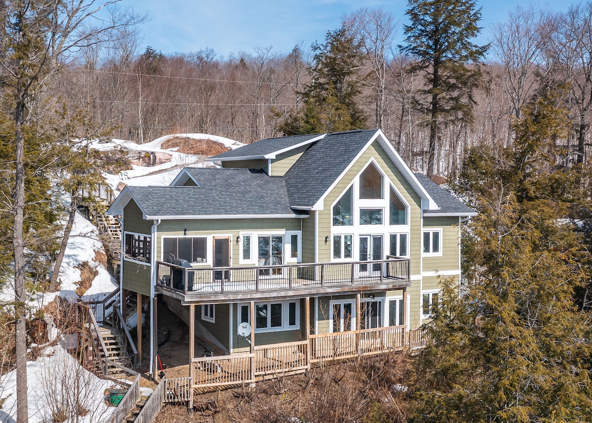 Impresionante refugio para familias y parejas maduras. Frente al campo de golf Deerhurst, a solo 2 km del área de esquí y snowboard de Hidden Valley. Rodeado de senderos para ciclismo/caminata/raquetas de nieve, pistas de esquí, campos de golf, Arrowhead y Algonquin Parks, para todas las actividades durante todo el año. Servicios de primera línea de diseño, jacuzzi holístico de 63 chorros para 9 personas, cine con pantalla de proyección de 135”, área de arena privada frente al estanque del campo de golf (sin acceso al agua). ¡Llueva o haga sol, la escapada perfecta!Máximo 8 adultos y niños