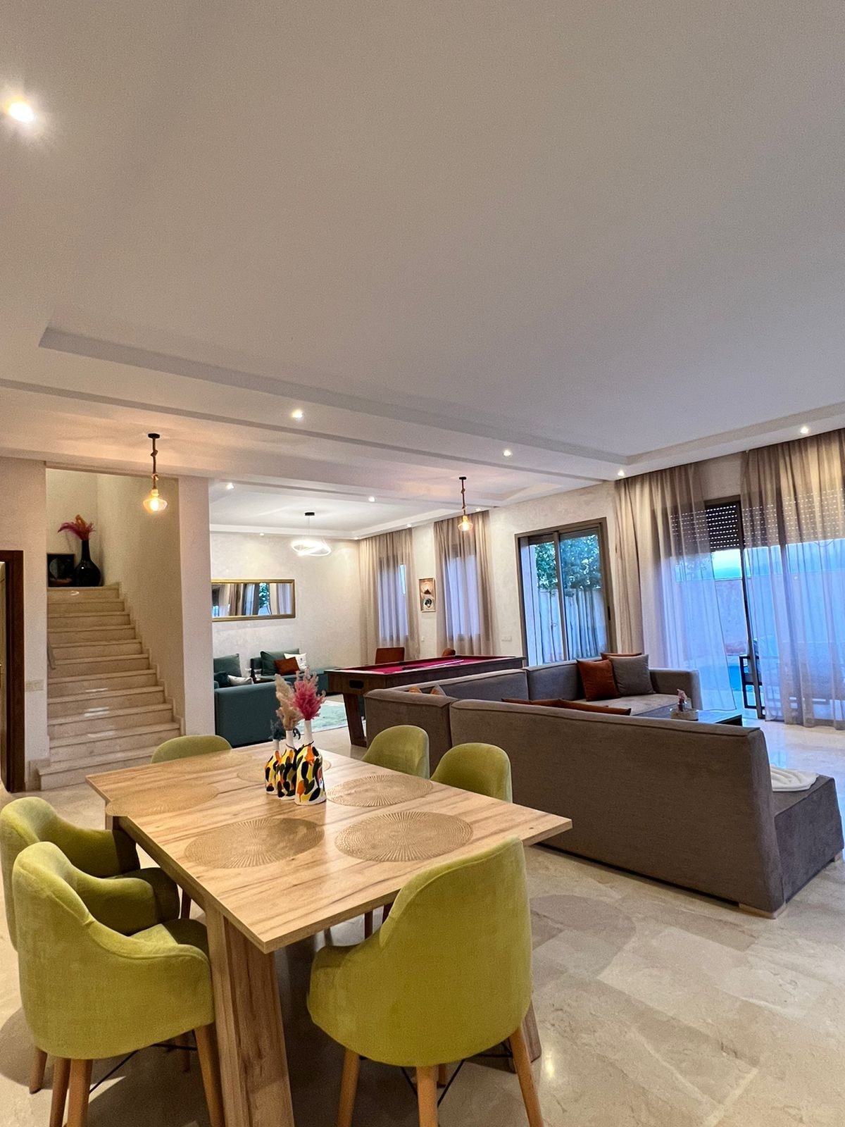 ✨ Bienvenue dans votre havre de paix à Marrakech exclusivement pour les familles ✨ Située à seulement 8 minutes du centre-ville, cette villa vous offre confort, modernité et divertissement dans un cadre sécurisé 24h/24. Profitez d’un séjour inoubliable avec une piscine privative , une petite salle de sport privée, des espaces de détente luxueux et de nombreux équipements haut de gamme,savourez les repas préparés par notre gouvernante(sur demande) et créez des souvenirs inoubliable