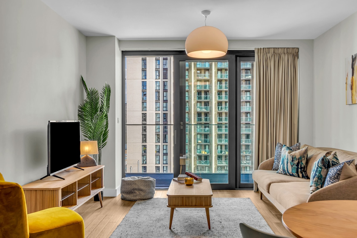 Ya sea que estés en la ciudad para un concierto, un partido de fútbol o simplemente para explorar la ciudad, este apartamento en un edificio seguro y moderno ubicado a solo 5 minutos a pie del estadio Wembley y el OVO Arena. Boxpark y London Designer Outlet cerca. Rodeado de restaurantes, cafeterías, parques y tiendas de comestibles. Disfruta de una elegante sala de estar de planta abierta, balcón privado, cocina totalmente equipada con electrodomésticos de primera calidad y un baño moderno. Wifi gratuito y televisores inteligentes para tu entretenimiento. Mantente activo con acceso a un gimnasio en el lugar.