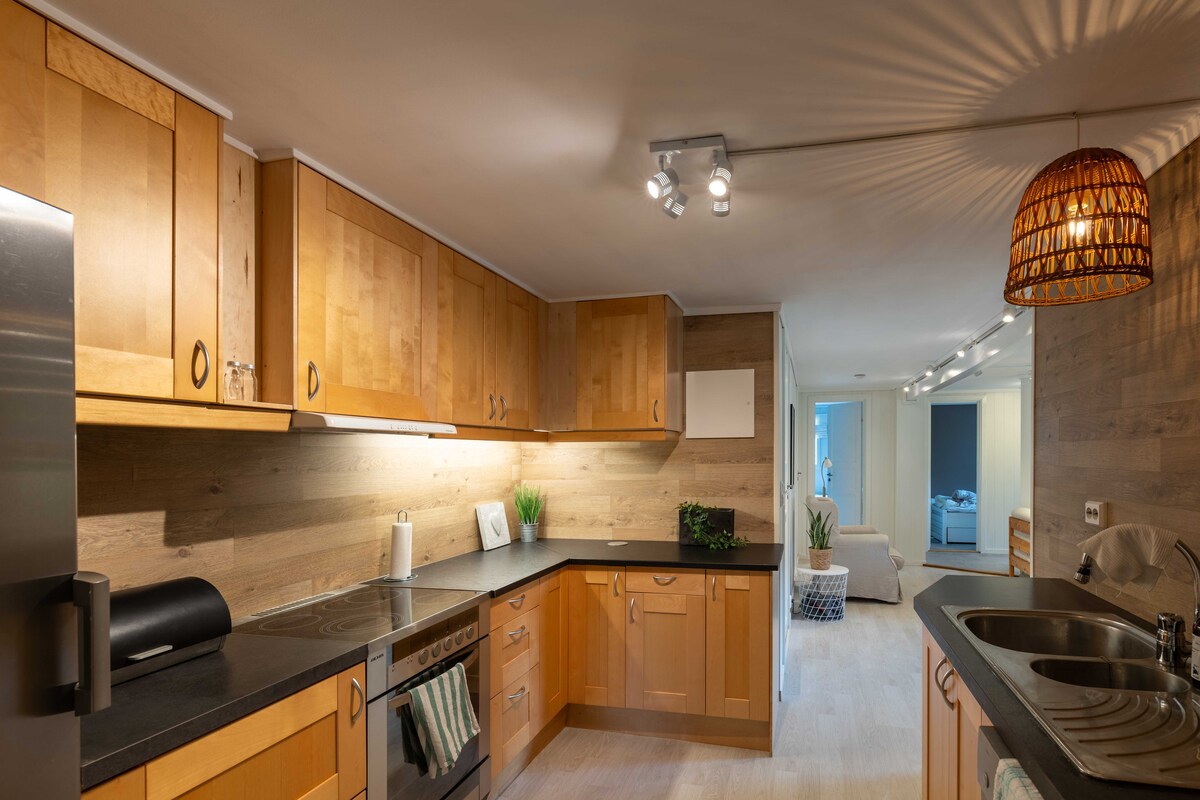 Acogedor apartamento en una sola vivienda. Zona tranquila cerca del mar. Proximidad a Kristiansand y Mandal, a 20 y 15 minutos en auto. El zoológico está a media hora en auto. El apartamento tiene una entrada al prado, una acogedora sala de estar con vistas al mar, cocina sencilla y alcoba para dormir. Baño con lavadora. Además, hay una acogedora zona exterior y, por supuesto, puedes desechar nuestro jardín con cama elástica.