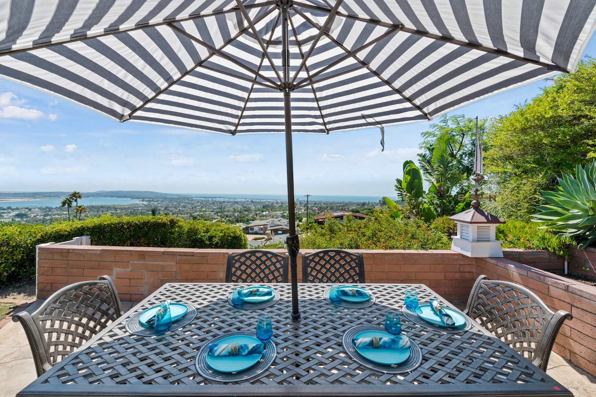 ¡Las mejores vistas de San Diego! Esta pintoresca casa de campo se encuentra en lo alto de la colina más alta de Rosemont Heights y ofrece vistas panorámicas de la increíble costa de San Diego, incluido el puente Coronado, el centro de la ciudad, Point Loma, México y las islas Coronado. Estamos ubicados en el centro, a solo 10 minutos del distrito de Gaslamp, el centro de la ciudad y el zoológico, a 20 minutos del aeropuerto y las playas y a 30 minutos de los casinos.