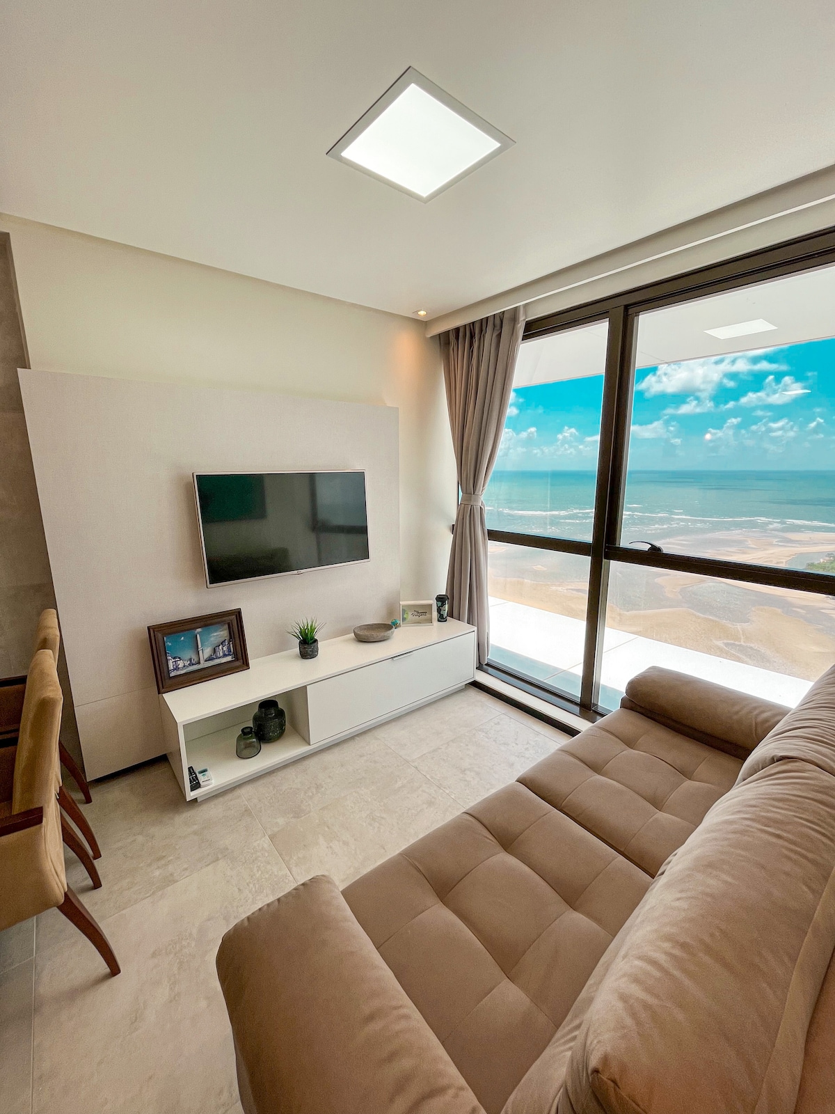 ¡Hermosa 🌅 vista! ¡Piso 21, frente al mar! 🌊 🍽️ Cocina completa ❄️ Aire acondicionado 🛁 Jacuzzi | 🏊♀️ Piscina | 🍖 Barbacoa 🚗 Garaje | 🏋️ Academia | Sala 🎯 de juegos 🧺 Servicio de lavandería disponible 🥐 Desayuno opcional: ¡R$25,00 por persona! ✨ La elegancia y la serenidad definen Flat JASPE. Toneladas de texturas grises y suaves, inspiradas en la piedra preciosa💎, crean un ambiente sofisticado y relajante para tu estancia.
