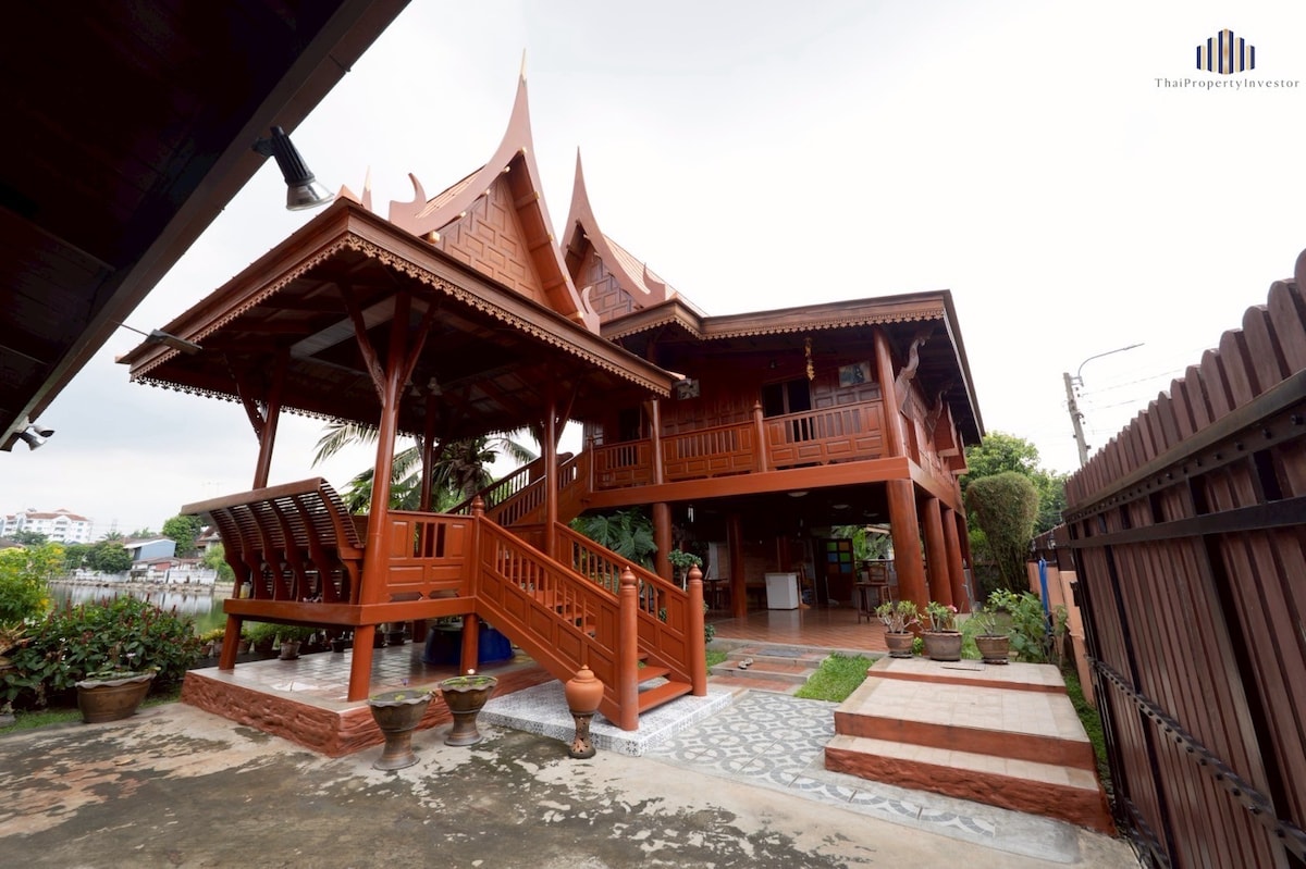 Experience the charm of an authentic Thai traditional wooden teak house. Our private riverside home by a peaceful pond is located near Don Mueang International Airport and IMPACT Arena Muang Thong Thani, making it a perfect place for both travelers and event visitors. ✨The entire house is exclusively yours, offering: • Unique Thai teakwood design with spacious living • Serene atmosphere right by the pond • Optional local experiences : Thai cooking classes, private tours and a rental car.