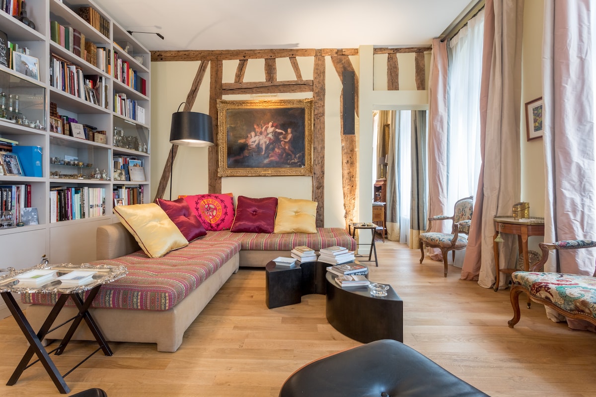 Un apartamento excepcional de 100 m2 ubicado en el codiciado y tranquilo distrito de Marais, conocido popularmente como el Viejo París. Es un apartamento antiguo situado en un claustro del siglo XIII, pero amueblado con electrodomésticos y muebles modernos para mayor comodidad. Mientras que una parte del apartamento tiene vistas a una calle peatonal, la otra tiene vistas al jardín de una iglesia. Seguro que disfrutarás de una experiencia única en este departamento. → Se proporcionan toallas y sábanas