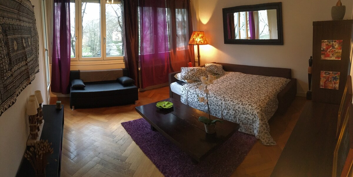 El apartamento tipo estudio está bien situado (frente a un parque, cerca del lago y de muchas organizaciones internacionales) y ofrece unas vistas estupendas del parque, el lago y los Alpes. El apartamento está completamente amueblado y equipado para el ocio, el trabajo o el estudio (wifi rápido y mesa de trabajo). El apartamento es ideal para viajeros de negocios, diplomáticos y funcionarios que trabajan para la ONU, pero también es adecuado para estudiantes o viajeros que deseen pasar una estancia cómoda y sin preocupaciones en Ginebra.