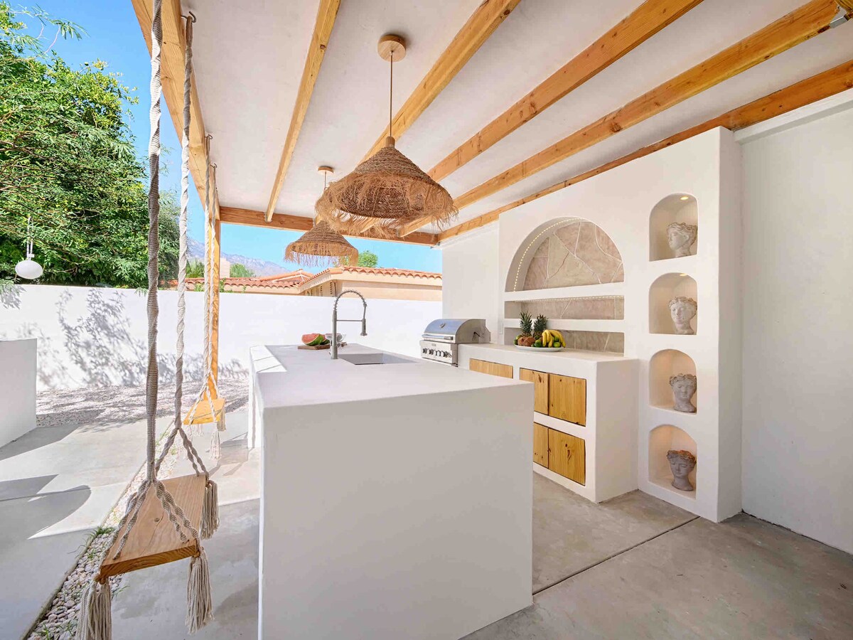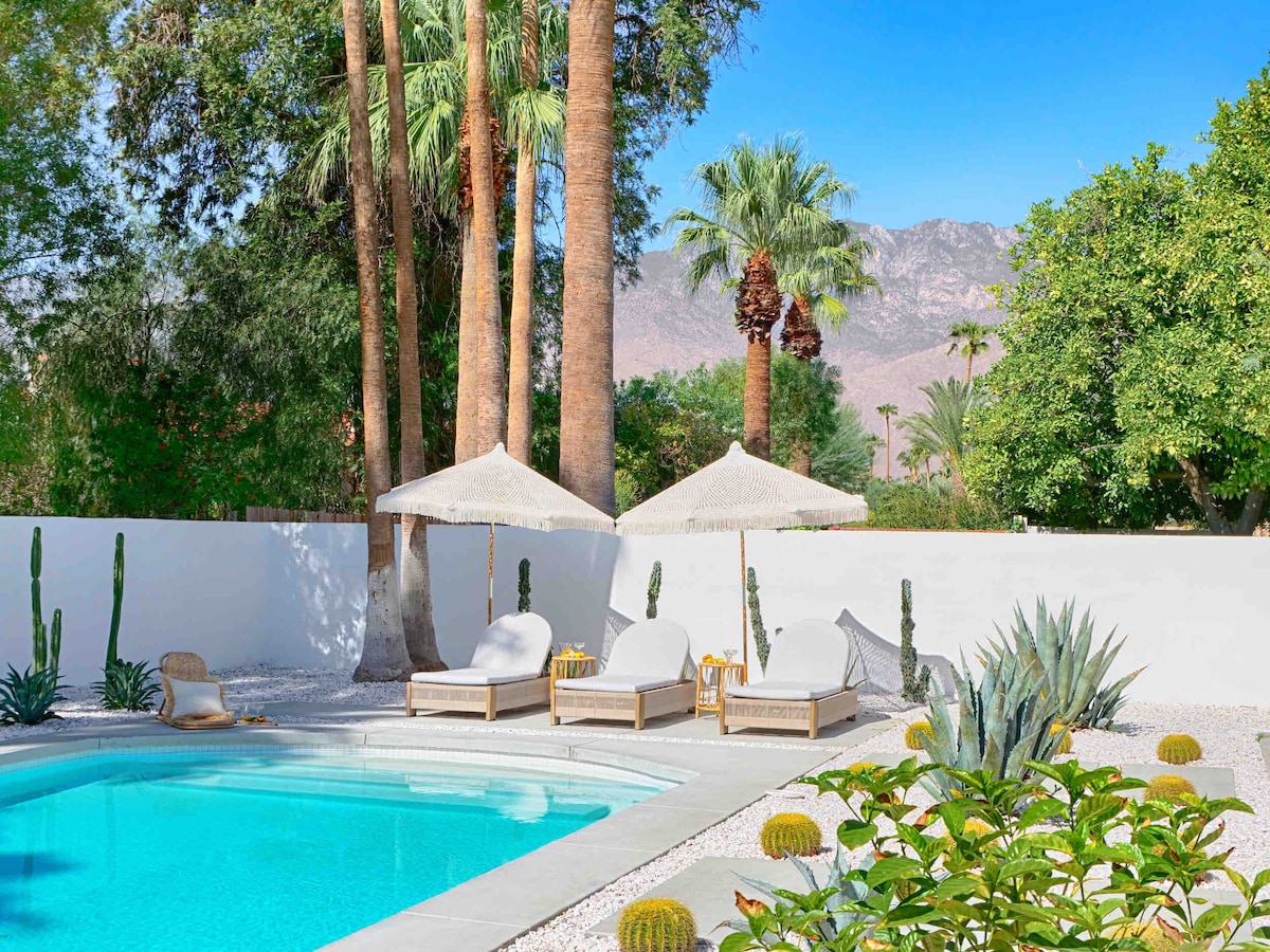 Un alojamiento saludable, holístico y orgánico, solo para vos. Piscina de agua salada y bañera de hidromasaje súper privada (nivel de traje de cumpleaños) con un jardín orgánico que cultiva hierbas frescas y verduras de temporada. Hay productos naturales para el cuerpo, ropa de cama orgánica, toallas y batas disponibles. Aire cálido del desierto, cielos azules y vistas a la montaña desde los patios delantero y trasero en este refugio privado en Palm Springs, perfecto para que vos o tus amigos y familiares creen nuevos recuerdos. City ID # 4235 TOT Permiso#7315