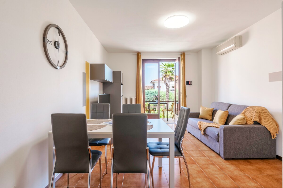 Inmersa en los olivos del lago de Garda, la residencia Allegra se encuentra a solo unos pasos del centro de Lazise, de fácil acceso a pie o en bicicleta. En el apartamento B de un dormitorio en la planta baja hay un dormitorio doble, una sala de estar con cocina con sofá cama y un porche cubierto donde puedes relajarte y disfrutar de una copa de vino. Entre las diversas comodidades encontrarás: aire acondicionado y calefacción, TV por satélite, wifi, caja fuerte, barbacoa, estacionamiento cubierto privado y una hermosa piscina.