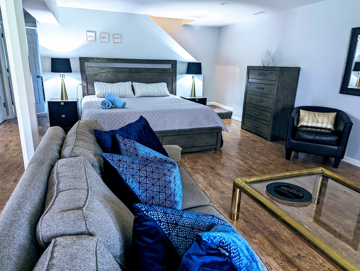 Disfruta de una experiencia limpia y elegante en la suite Juni. Cocina todas tus comidas en la cocina bien equipada, sumérgete en la bañera profunda y mantente caliente junto a la chimenea. Una cama tamaño queen con colchón de espuma viscoelástica y persianas enrollables opacas te ayudarán a dormir profundamente. El sofá convertible es fácil de expandir a tamaño completo. Proteja su vehículo en el estacionamiento cubierto fuera de la calle que está a pocos pasos de la entrada (7 escalones hacia arriba y 13 hacia abajo). Cerca de Union College/tiendas.