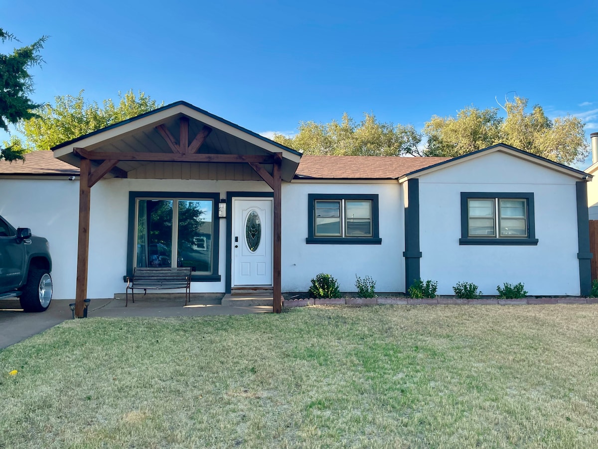 Casa de 1945 reformada con cariño; 2 dormitorios, baño completo, céntrica en zona histórica. Lleva el nombre de Amarillo, que está a medio camino entre Chicago y Los Ángeles en la famosa Ruta 66 de EE. UU. Patio privado y vallado para tu mascota y un patio cubierto para ti. A 5 minutos del estadio de béisbol del centro de la ciudad. Restaurantes, tiendas y supermercados a 5 minutos en coche. Parque Austin con parque infantil a tres manzanas a pie. Cerca del parque estatal Palo Duro Canyon, Big Texan Steakhouse, Starlight Ranch Event Center, jardín botánico. Aparcamiento gratuito fuera de la zona pública en la parte delantera.