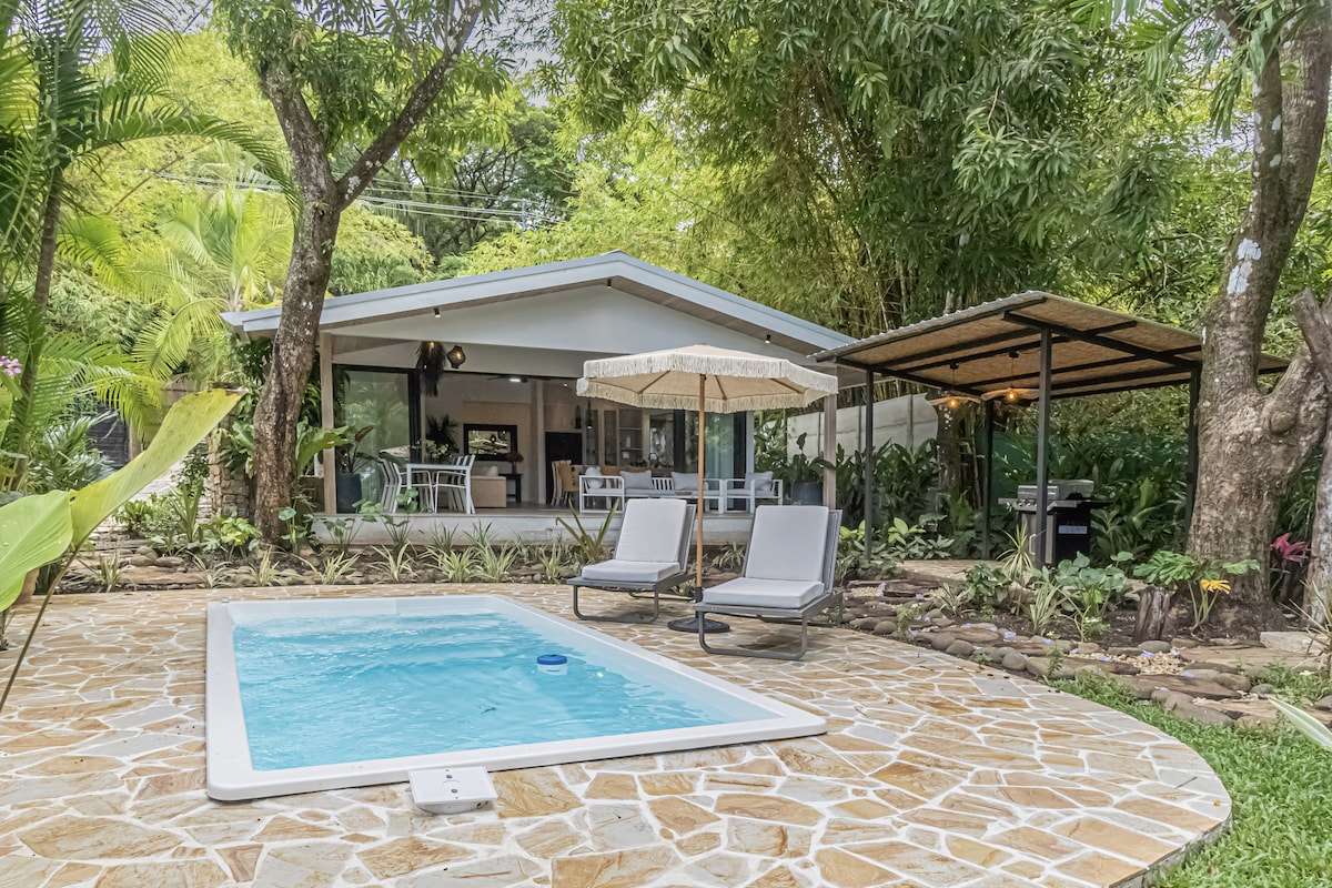 Relajate en esta lujosa villa privada con tu propia pileta, a solo 3 minutos a pie de la playa, perfecta para descansar con comodidad y privacidad. Ubicado en la península de Nicoya en la Zona Azul en la playa de Tambor en una comunidad cerrada con seguridad 24/7 con un hermoso campo de golf de 9 hoyos. Concepto abierto luminoso con 3 camas y 2,5 baños. Parrilla a carbón. En la comunidad: supermercado, restaurante, música en vivo y un café. Aire acondicionado. Internet de alta velocidad de 100 Mbps. Estacionamiento gratuito. Se admiten mascotas.