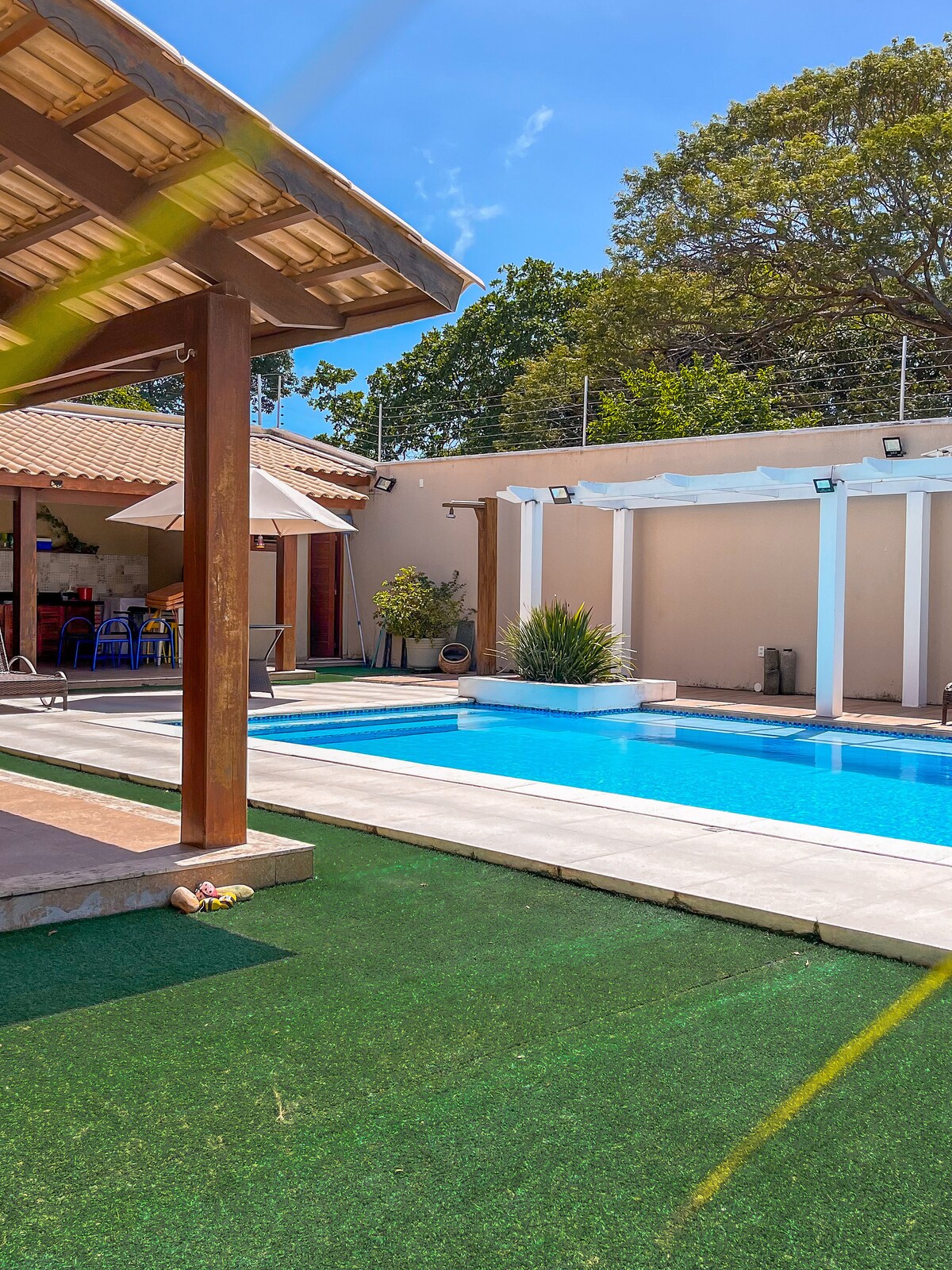 Lleva a toda la familia a este gran lugar con mucho espacio para divertirse. Una casa espaciosa rodeada de un jardín bien cuidado con una excelente pileta con cascada y una gran terraza, también tiene una sauna, junto a la terraza y con vistas a la pileta. La casa tiene 4 suites, 2 con aire acondicionado: todas las suites tienen una cama doble y +1 cama individual y + 1 dormitorio frente al baño social, tiene una amplia sala de estar, dos balcones y un rincón especial para el café.