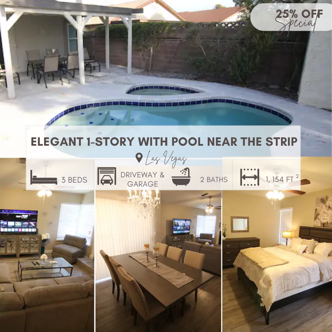 Welcome to a design-forward private villa minutes from the Strip and five minutes from the airport—ideal for effortless arrivals and short luxury stays. Set on a rare quarter-acre lot, this 2,400-sq-ft contemporary retreat offers curated interiors, open living spaces, and a resort-style backyard rarely found this close to the action. Enjoy privacy, space, and easy access to dining, nightlife, and major venues. Effortless, private, and impeccably located — this offers the best of both worlds.