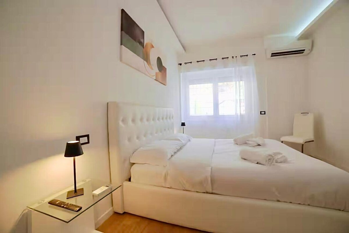 Precioso apartamento a 100 metros de la estación de metro. A 15 min de la estación Termini y del Coliseo; a 25 min de San Pietro -Dos habitaciones dobles y un hermoso balcón. -Cocina equipada con horno, frigorífico, congelador y utensilios de cocina -Baño con agua caliente, bañera que también se puede utilizar como ducha, jabón, champú -Existe la posibilidad de añadir una tercera cama -Aire acondicionado, ventilador, plancha, lavadora, TV y wi-fi. -Supermercado, y muchos otros servicios cercanos