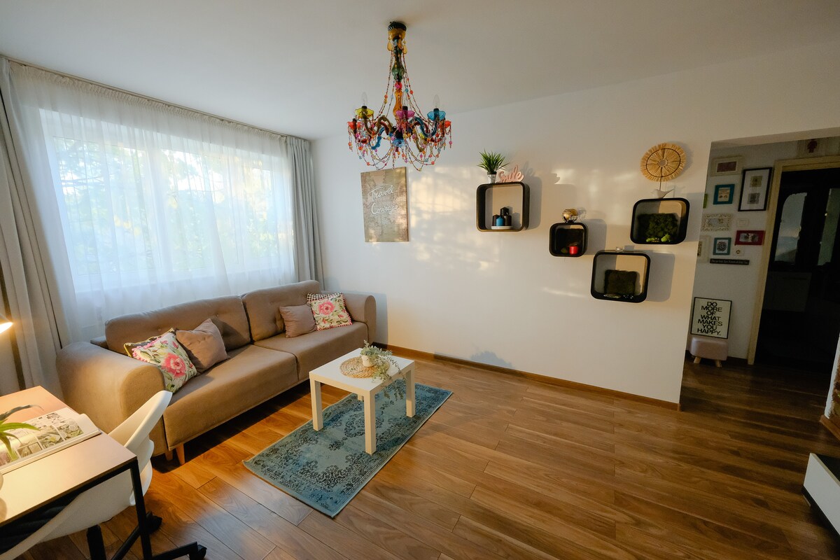 ¡Uno de mis proyectos personales más queridos! Este encantador apartamento de un dormitorio se encuentra en uno de los bulevares más importantes en el corazón de Bucarest: Calea Victoriei. Tiene mucha historia que quería conservar y revivir. Como lo hago en todos mis apartamentos, guardé el hermoso suelo de madera, que se colocó utilizando una técnica que ya no se utiliza y un elemento más que te dejé descubrir. Eso te contará un poco sobre las mujeres que vivían allí. Todo lo demás ha cambiado por completo.