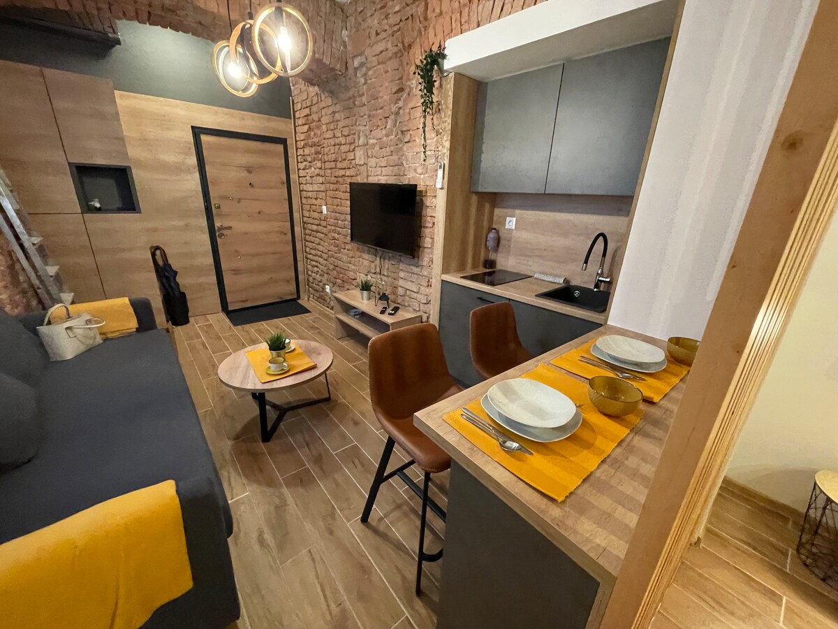 NUEVO apartamento elegante en el CENTRO DE LA CIUDAD a menos de 10 minutos a pie de la plaza principal y la estación de tren. Situado en un tranquilo patio trasero en la calle principal para que puedas disfrutar de noches tranquilas. Hay un dormitorio con cama tamaño queen, sala de estar con TV + NETFLIX y sofá cama (tamaño queen), baño con inodoro y amplia ducha separada. Todos los muebles y electrodomésticos son nuevos. Té y café GRATIS, toallas GRATIS.