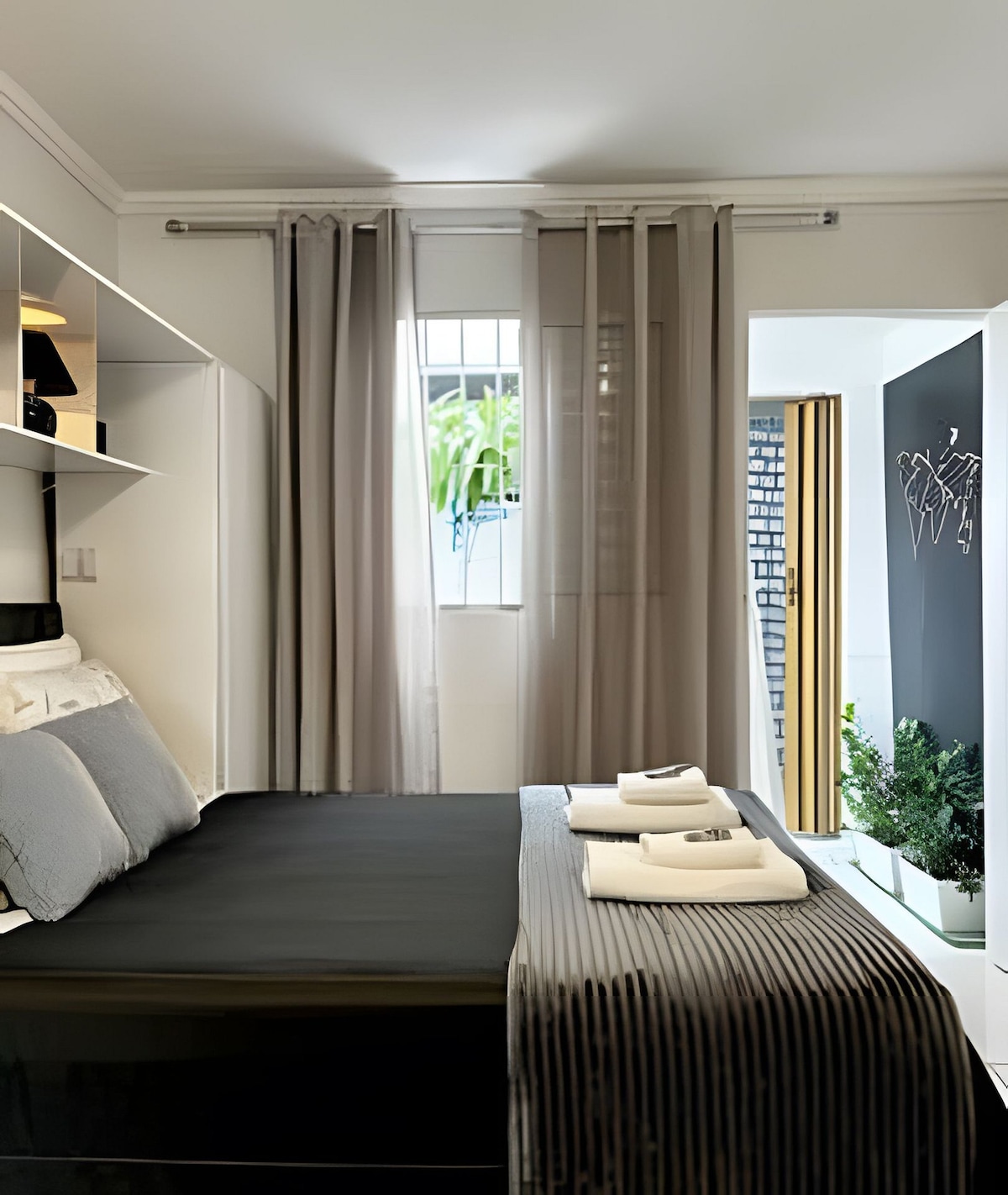 Estudio moderno en Itaim Bibi 45 m² Ubicado en el corazón de Itaim Bibi, una de las regiones más nobles de la ciudad. El espacio combina comodidad, practicidad y sofisticación, ideal para estadías de ocio o trabajo. El departamento tiene: cocina completa, cafetera de cápsulas, ropa de cama y toallas de primera calidad. Ubicación privilegiada a pocos minutos de Av. Faria Lima y Av. JK, con fácil acceso a los excelentes restaurantes de la ciudad, tiendas de alta gama, como JK Iguatemi y parques.