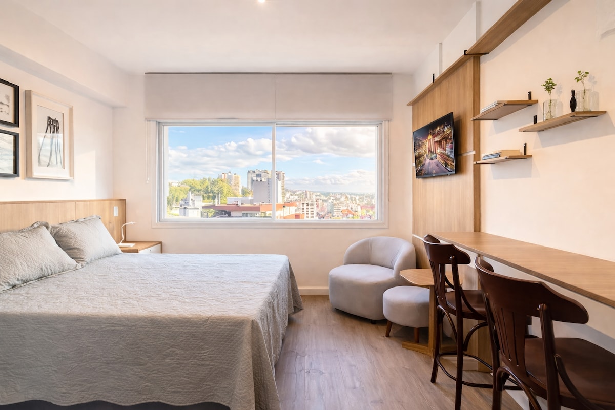 Studio Moderno e Confortável no Coração de Porto Alegre - GO24 Este estúdio aconchegante oferece uma experiência completa de conforto e praticidade, ideal para quem busca estadias curtas ou de longa duração no coração de Porto Alegre. Localizado em uma área vibrante e de fácil acesso, o GO24 Studio conta com design moderno, decoração clean e funcional. É o espaço perfeito para quem valoriza estilo e conveniência.