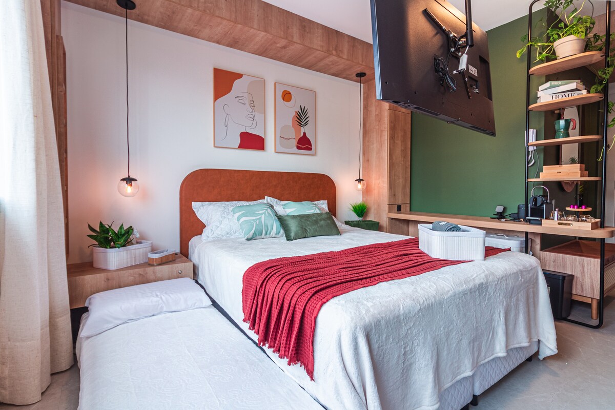 Temos aqui • Piscina Aquecida (terraço) 24h • Academia 24h • Cowork 24h • Lavanderia 24h • Mercadinho 24h • Bilhar 24h • Bicicletário c/ bikes disponibilizadas gratuitamente! • Internet rápida 500MB • Cama Queen • Churrasqueiras e forno (terraço) • Pet friendly • Estacionamento (pago) • Portaria 24h • Fácil cadastro, self check-in e acesso por código • Áreas para fumantes *toalhas e roupas de cama inclusas! *mande uma consulta!
