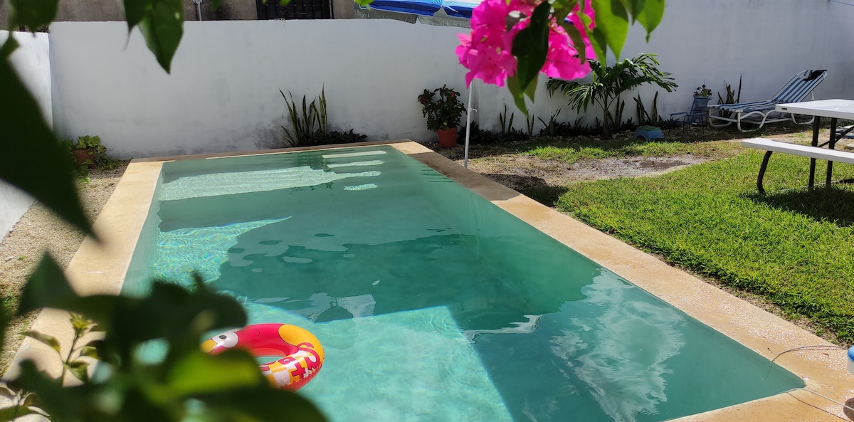 Amplio departamento dentro de una casa, perfecto para 2 personas. Ubicado al oriente del centro de Mérida, cerca del barrio del ChemBech a 20 minutos a pie del zócalo. Único en estilo y diseño, con acabados de lujo, garantizamos privacidad lejos del bullicio del centro y la sensación de estar en un oasis. Cuenta con sala, comedor-cocina equipada, habitación con baño, terraza techada, piscina-jardín. No se permiten visitas de personas externas a la reserva, o fiestas dentro del alojamiento.