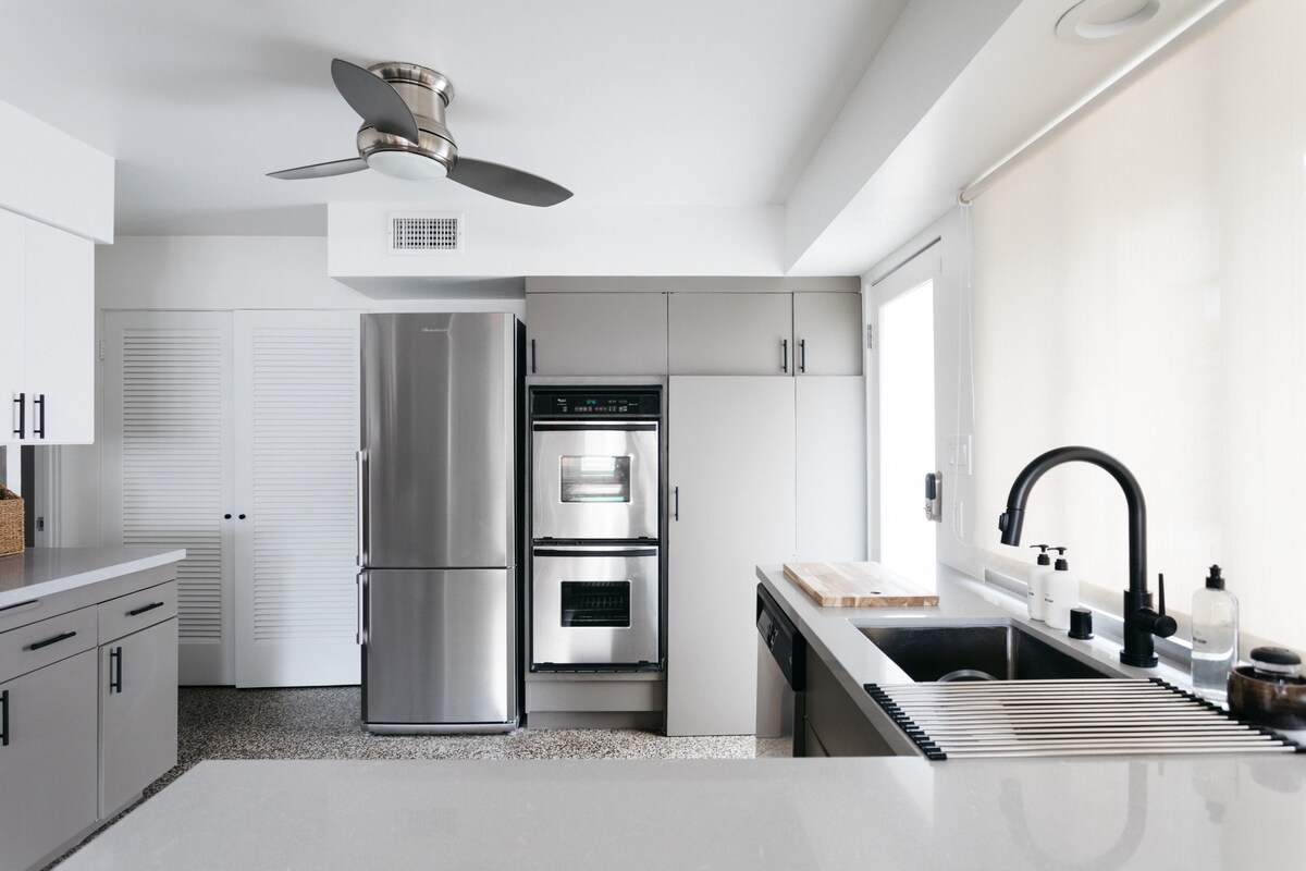 Oasis remodelado para una escapada perfecta a esta casa de huéspedes privada con un diseño ecléctico y colorido que combina una decoración contemporánea, rural y de inspiración europea con lujos modernos y tragaluces espectaculares. Relájate tranquilamente en el exuberante jardín justo al lado del dormitorio. ACEPTAMOS HASTA 2 PERROS POR UNA TARIFA ADICIONAL DE 150 DÓLARES POR LIMPIEZA DE MASCOTAS. NO SE ADMITEN GATOS. TEN EN CUENTA QUE HAY 3 CÁMARAS DE VIDEO DE VIGILANCIA EXTERIOR EN EL ÁREA DE ESTACIONAMIENTO Y EN LA ENTRADA, PARA LA SEGURIDAD DE LOS HUÉSPEDES.