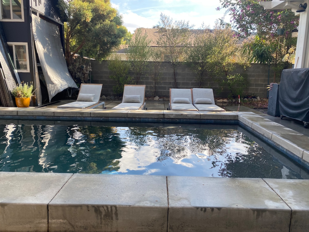 Esta casa de campo privada de 450 pies cuadrados meticulosamente diseñada proporciona el oasis perfecto: un espacio abierto y espacioso con techos abovedados y mucha luz natural. Disfruta de la pantalla de proyección de 110 pulgadas con sonido envolvente para disfrutar de una experiencia cinematográfica por las noches o de una copa de vino junto a tu propia fogata privada. ¡Un auténtico santuario! INDOORS-- Nueva construcción: es una porción de paraíso de 450 pies cuadrados con: •Techos abovedados y dos tragaluces (con persianas que funcionan con mando a distancia) • Cocina de tamaño completo con electrodomésticos modernos que incluyen nevera LG, tostadora y cafetera Keurig • Centro multimedia con un sistema de sonido de última generación, capacidad Bluetooth, proyector de películas y pantalla de películas de 110pulgadas (¡Hola, STAR WARS!) •Cama Murphy tamaño queen con un cómodo colchón híbrido hecho de espuma viscoelástica y bobinas de primavera, un armario con mucho espacio en el armario e iluminación de puck (ideal para leer un poco tarde por la noche) • Rincón acogedor para desayunar con cómodas almohadas • La puerta del granero da a un amplio baño con: suelos de mármol, puertas de ducha de cristal sin esponjosas, espaciosas duchas totalmente abastecidas, a ras de suelo y con un banco de mármol, un tocador espacioso y espacioso • Puertas de carruaje que se pueden abrir para disfrutar del esplendor del día OUTDOORS-- Un patio trasero tipo resort te espera con: •Piscina de nueva construcción (38'Lx9'W) •Hermoso y sereno paisajismo •Impresionante iluminación ambiental •Fogata •Mesa de comedor • Sofá cama de lujo •2 tumbonas. La casa está situada a cierta distancia detrás de la casa principal, por lo que podrás disfrutar de mucha privacidad. El patio trasero es tuyo para usarlo durante tu estancia, incluido el comedor al aire libre, el sofá al aire libre, las tumbonas, la chimenea y la piscina. ¡Relájate Y disfruta! LLEGADA: 3: 00 P. M. SALIDA: 11: 00 a. m. APARCAMIENTO: te proporcionamos permisos de aparcamiento (día/noche) a tu llegada. Si vas a quedarte más de una noche, ten en cuenta que debes cambiar el permiso durante el día todos los días. Por lo general, hay un amplio aparcamiento, por lo que encontrar un espacio no debería ser un problema. DESCARGOS DE RESPONSABILIDAD: (1) NO HAY SOCORRISTAS DE GUARDIA, por lo que LA NATACIÓN ES bajo TU PROPIA RESPONSABILIDAD. (2) NO ESTÁ PERMITIDO BUCEAR EN LA PISCINA. (3) NO CALENTAMOS LA PISCINA. EN LOS MESES MÁS CALUROSOS, LA PISCINA SE MANTIENE ALREDEDOR DE 76-80 GRADOS FAHRENHEIT. SIN EMBARGO, TEN EN CUENTA QUE NATURALMENTE SE ENFRÍA DURANTE EL CLIMA MÁS FRÍO (65-68 GRADOS FAHRENHEIT). (4) EL APARCAMIENTO EN LA CALLE ES BAJO TU PROPIA RESPONSABILIDAD. AUNQUE NUNCA HEMOS TENIDO NINGÚN PROBLEMA, NO PODEMOS GARANTIZAR LA SEGURIDAD DE TU COCHE. (5) SI OLVIDAS COLOCAR LOS PERMISOS DE APARCAMIENTO EN TU COCHE O COLOCARLOS INCORRECTAMENTE Y RECIBIR UNA MULTA DEL AYUNTAMIENTO DE PASADENA, SERÁS RESPONSABLE DE PAGAR POR ESE BILLETE. Operamos con la idea de que, si te vas de escapada o viajas por trabajo, probablemente tengas ganas de pasar tiempo de calidad solo y con privacidad. Respetamos eso mientras estés aquí. Sin duda, nos encanta tener una buena charla, pero te la dejamos a ti. Si necesitas algo, envíanos un mensaje de texto. Por lo general, estamos disponibles hasta las 23: 00 h. Si no podemos ponernos en contacto contigo por cualquier motivo, no dudes en dejarnos un mensaje y nos pondremos en contacto contigo lo antes posible. Por supuesto, en caso de emergencia o para acceder a la propiedad, estamos disponibles las 24 horas, los 7 días de la semana. La casa de huéspedes ofrece un refugio tranquilo cerca de la civilización. El metro y una gran variedad de restaurantes son fácilmente accesibles a pie. El centro de Pasadena está a un corto paseo en bicicleta, a un paseo saludable o a poca distancia en coche. ¡Pasadena es un pueblo precioso con mucho que ver! Estamos a 10 minutos a pie de la estación de metro Lake Gold Line, donde puedes coger la línea dorada hasta South Pasadena y disfrutar de las tiendas/restaurantes de Mission Street, tomar la parada Del Mar donde puedes disfrutar del famoso bazar Rose Bowl (segundo domingo de cada mes), tomar la parada Union Square para experimentar la calle Olvera (¿margaritas, alguien?) o un delicioso sándwich French Dip de Phillipe 's. Si buscas un museo, sal en la estación Memorial Park para encontrar el Norton Simon Museum, una de las mejores colecciones de arte visual de la zona de Los Ángeles. El centro de Pasadena, con sus maravillosas tiendas y restaurantes, está a solo 5 minutos en bicicleta o coche (o, para aquellos que disfrutan de un poco de ejercicio, a 30 minutos a pie). Tenemos dos perros adorables. Sin embargo, nunca tienen acceso a la cabaña, por lo que está libre de alérgenos/mascotas. Durante tu estancia, con mucho gusto los guardamos en la casa y solo los dejamos salir a hacer su trabajo en el patio delantero de la casa principal. Es posible que escuches los ladridos ocasionales, ya que les encanta proteger su casa de campo. Pero, lo más probable es que nunca los escuches, ya que la cabaña está a una distancia cómoda. ¡Por cierto, son amigables y les encanta conocer gente nueva!