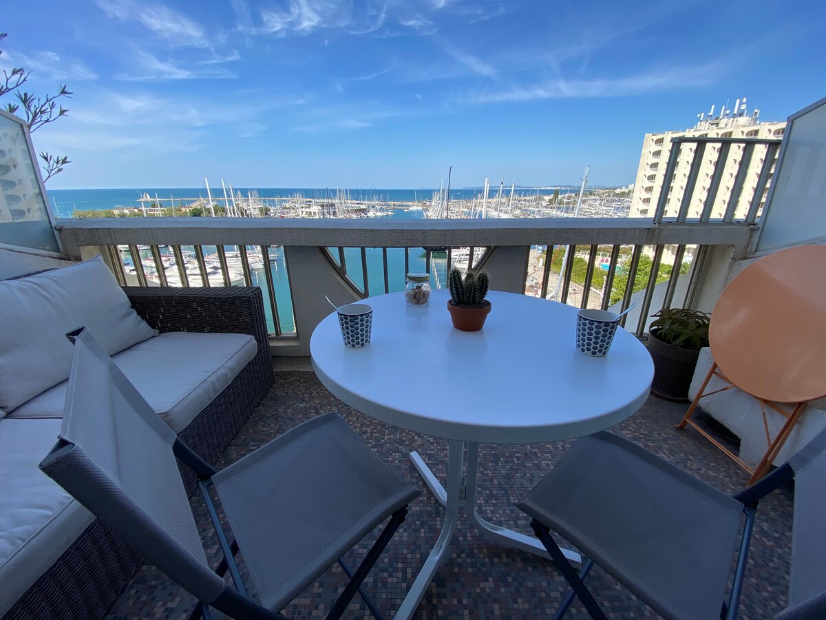 Beau Studio vue imprenable Port et Mer +Terrasse