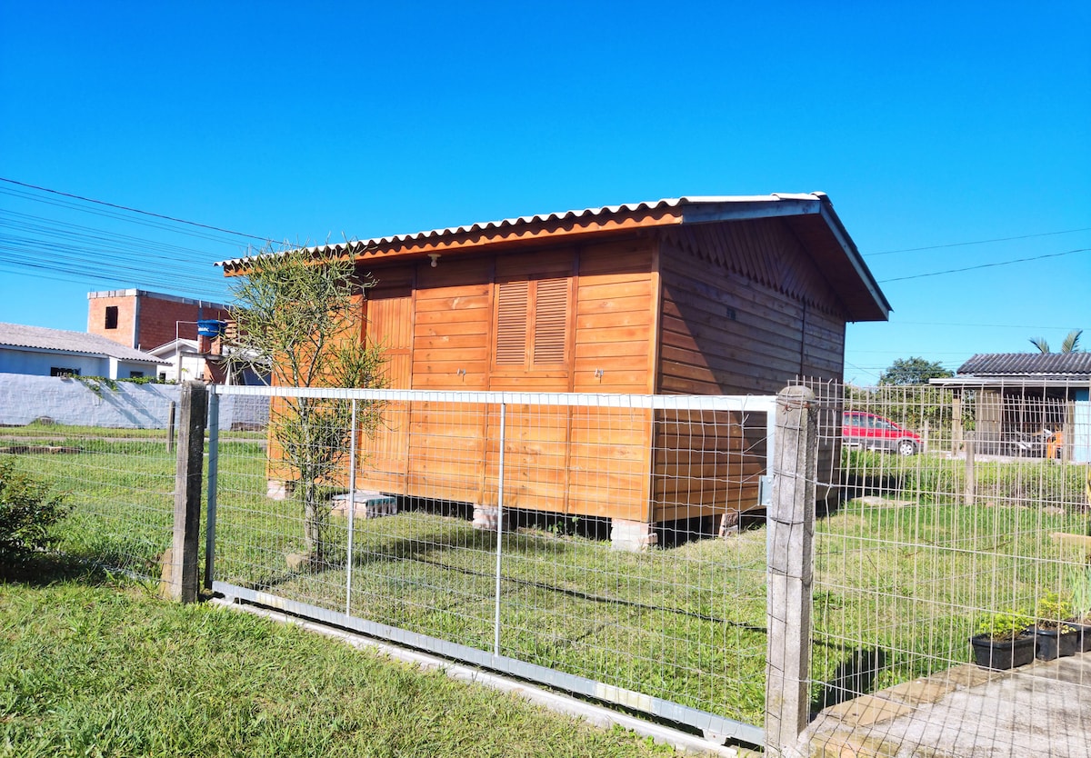 La casa está a 100 metros (2 minutos a pie) del mar, Passo de Torres, SC, y a 4 km (10 minutos en coche) de la playa de Torres, RS, en la frontera con SC. El chalet está totalmente amueblado, con cocina completa (todos los utensilios), 1 cama doble y 1 litera, con ropa de cama, almohadas, mantas. El baño tiene ducha eléctrica (toallas, jabón, papel higiénico, secador de pelo). Ofrecemos red WI-FI gratuita. El área total aprox. 25 m2°. No aceptamos reservas de más de 10 noches o mensuales.