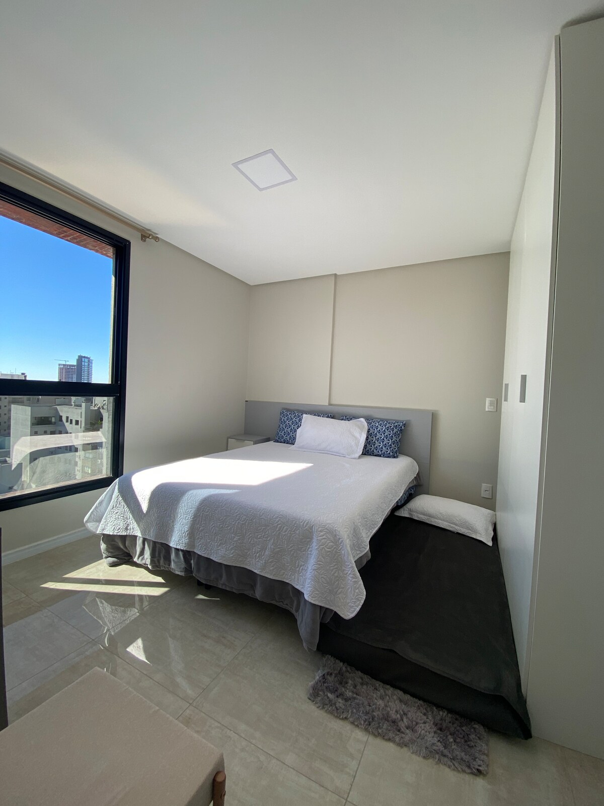 Estudio supercéntrico en el piso 17 de un edificio nuevo con gimnasio, terraza y minimercado. Estacionamiento privado, aire acondicionado, cocina completa, lavarropas, ropa de cama, colchón Castor, almohadas, mantas y toallas. Internet privado de 360 Mb con un excelente espacio de oficina en casa con un escritorio grande y una silla ergonómica. Muy tranquilo y seguro. Lugares cercanos: Fleming Medicine a 550 m, Atitus a 700 m, FGV a 450 m. Restaurantes, farmacias y supermercados a pocos metros.