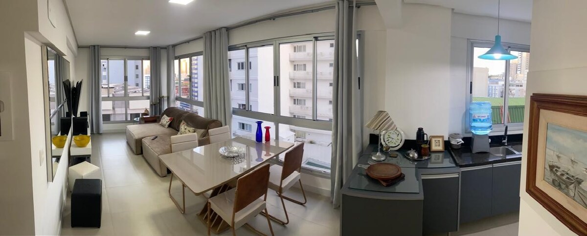 Hermoso apartamento de 1 dormitorio, nuevo y moderno, para un máximo de 4 personas, con sofá cama. Siguiente. HSVP, mercados, Av Brasil, farmacias, plaza, parada de autobús, centro comercial; cocina 100% equipada con barbacoa, electrodomésticos y utensilios nuevos. Armario grande, dormitorio con cama tamaño queen. Tiene aire acondicionado frío y calor, Wi-Fi, TV inteligente con canales abiertos, 01 plaza de aparcamiento. Planta alta con vista frontal (14), un edificio con un sofisticado gimnasio, salones de baile, una piscina climatizada y una lavandería compartida.
