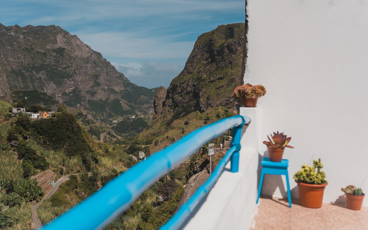 Este elegante apartamento en el valle de Paul tiene vistas a un oasis verde con plantas de plátano, mango y árboles de pan. Se encuentra a pocos pasos de Vila das Pombas, lo que significa que tiene fácil acceso a restaurantes y tiendas. Nuestra casa, Kasa d'Vizin , que significa "la casa del vecino", en criollo, se encuentra en un pequeño pueblo con vistas a las montañas y el océano. Lo que hace que nuestro apartamento sea único es que es una mezcla entre la comodidad europea y el estilo caboverdiano. ¡Veganos y vegetarianos bienvenidos!