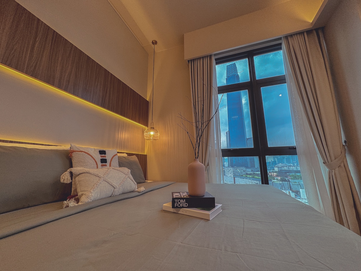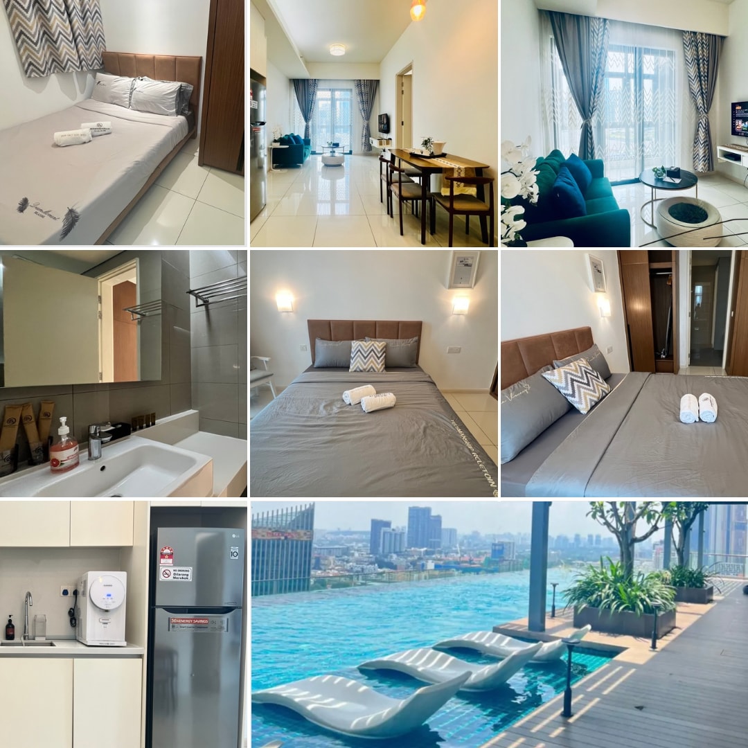 Situado en el corazón de Bukit Bintang, nuestro elegante refugio tiene capacidad para hasta 6 huéspedes. Disfruta de la vibrante vida nocturna, los centros de entretenimiento, las acogedoras cafeterías y los restaurantes locales, todo a pocos pasos. Lo más destacado de esta unidad son las dos piscinas en la azotea, que ofrecen impresionantes vistas panorámicas del horizonte de la ciudad de Kuala Lumpur y TRX. Después de un día de exploración, relájate con un televisor inteligente de 55 pulgadas e internet de alta velocidad de 100 Mbps, perfecto para la transmisión ininterrumpida de películas y el disfrute de la música.