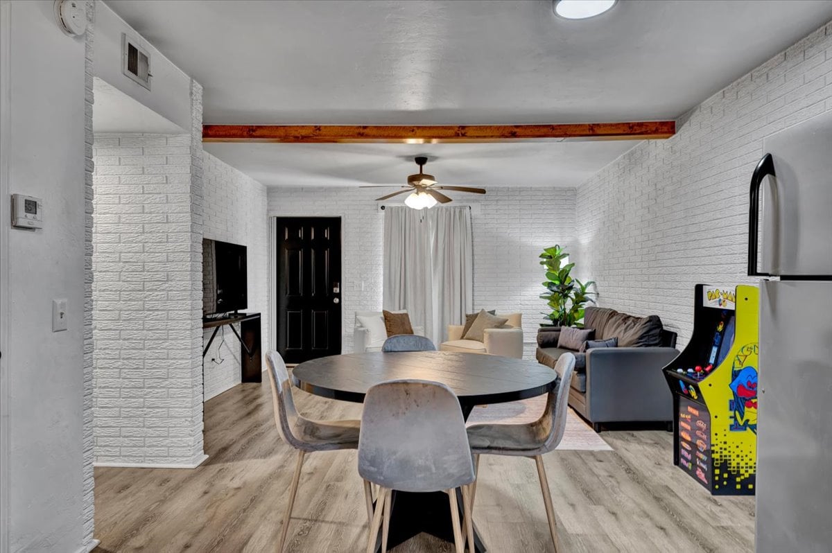 Estarás cerca de todo, convenientemente ubicado a 1 cuadra de la calle principal, lo que facilita la planificación de tu visita. Nuestra casa inteligente cuenta con un plano de planta abierta desde el rincón comedor y la barra de café con una Kuerig, a través de la cocina hasta la sala de estar con televisores Roku y cómodas camas tamaño queen en cada habitación, wifi, lavadora/secadora, zona vallada privada con parrilla y chimenea: el Roadrunner está totalmente equipado con todas las comodidades del hogar para tu estancia. Sensación de privacidad en una casa céntrica.