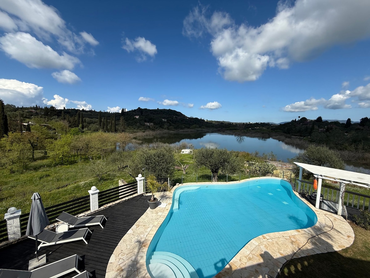 Construcción moderna y espaciosa de piedra y madera con piscina privada de 8 m x 4 m. Techos de doble altura ligeros y espaciosos en una paleta natural y suntuosos muebles. Situado en la cima de una pequeña colina y con una vista encantadora de la vegetación de Corfú. Los jardines están muy vallados para mayor privacidad y seguridad de los niños y conducen a un olivar. Lugar muy tranquilo, apto para cualquier edad. Ideal para barbacoas. A 500 metros de Aqualand. A 10 minutos en coche del aeropuerto, la ciudad de Corfú, Marina Gouvia y largas playas de arena.