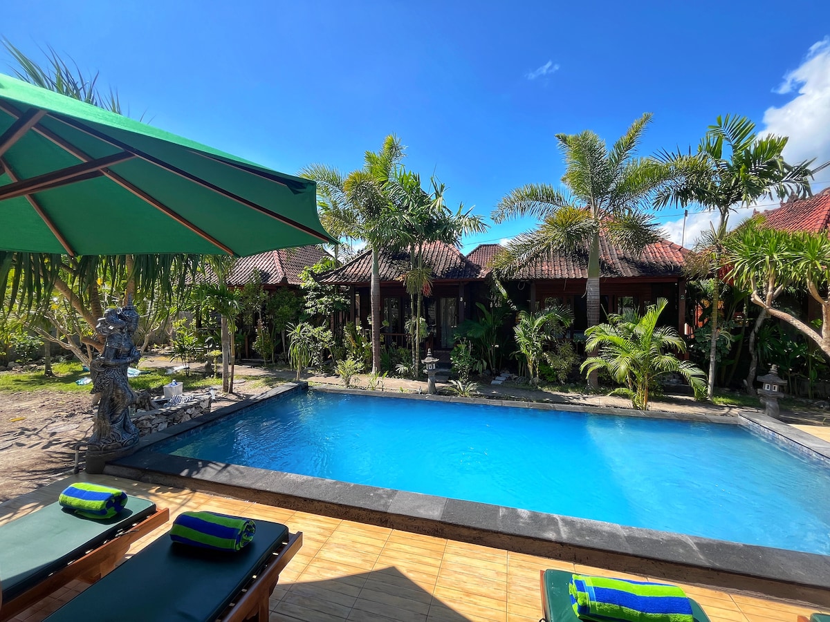 Te encantará este adorable lugar para alojarte. Piscina al aire libre, estacionamiento privado gratuito, un jardín y una terraza. La propiedad está a unos 2 kilómetros de la playa de Pandan, a 2,9 kilómetros de la playa de la bahía de Gamat y a 14,1 kilómetros de la cascada de Seganing. Los huéspedes pueden disfrutar de platos estadounidenses e indonesios en el restaurante o tomar una copa en el bar.