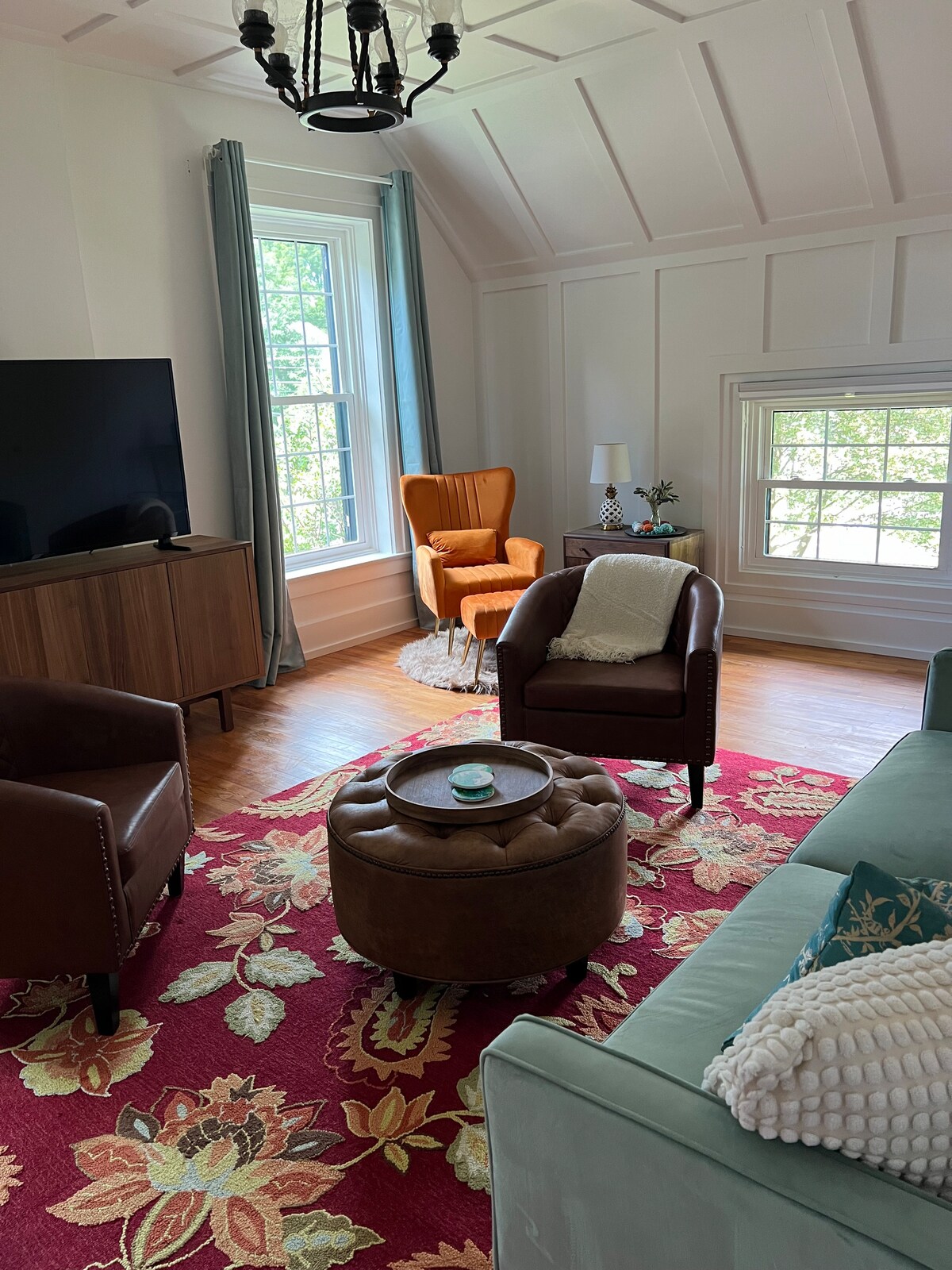 Olvídate de tus preocupaciones en este espacio espacioso y sereno. Ubicado en el sótano de la casa. 1 dormitorio privado con un sillón de masaje adicional para usar a tu conveniencia. Total de 2 áreas para dormir separadas cuando se usa la cama Queen Murphy desplegable en la sala de estar. Tu propio espacio de cocina pequeña, baño completo y sala de estar separada con tu propia entrada privada a través del patio trasero. Tendrás acceso a un área de jacuzzi durante tu visita con una sala de estar apta para 420 personas con fogata.